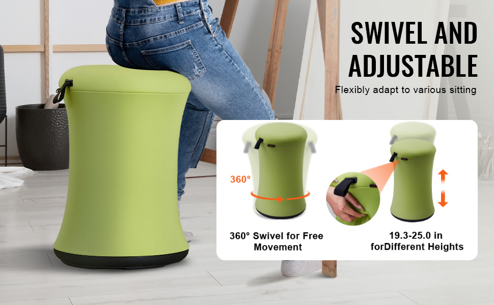 Stolička sa otáča o 360°, čím ponúka širší rozsah pohybu. S nastavením výšky od 19,3 do 25 palcov je vhodná pre štandardné aj stojace pracovné stoly a umožňuje jednoduché prechody medzi sedením a odpočinkom.
