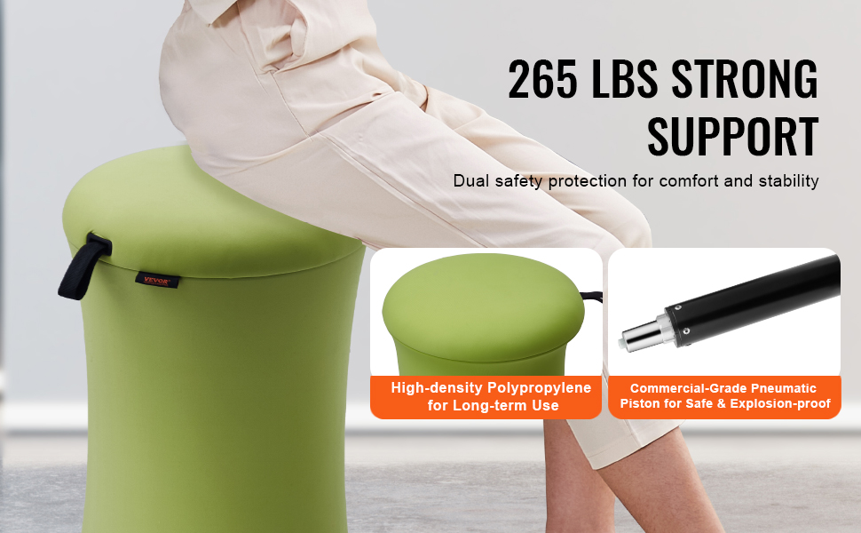 Podporí až 264,6 kg a obsahuje pružný vankúš s vysokou hustotou, ktorý si zachováva tvar aj pri dlhodobom používaní. Pneumatický piest komerčnej triedy zaisťuje stabilitu a bezpečnosť aj pri častom hojdaní.