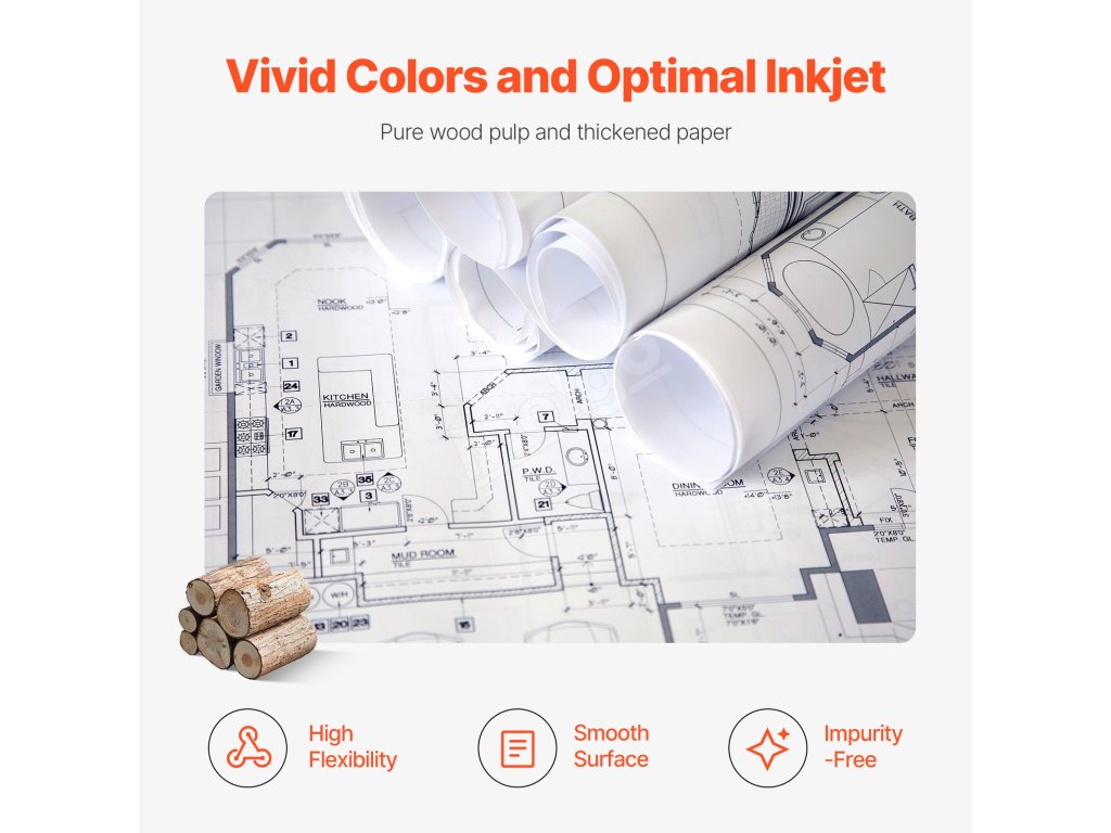 Táto papierová rolka CAD je vyrobená z čistej drevnej hmoty, ktorá ponúka ostré, živé a ľahko čitateľné výtlačky. Každý detail krásne vynikne a zaručuje dlhotrvajúcu kvalitu.