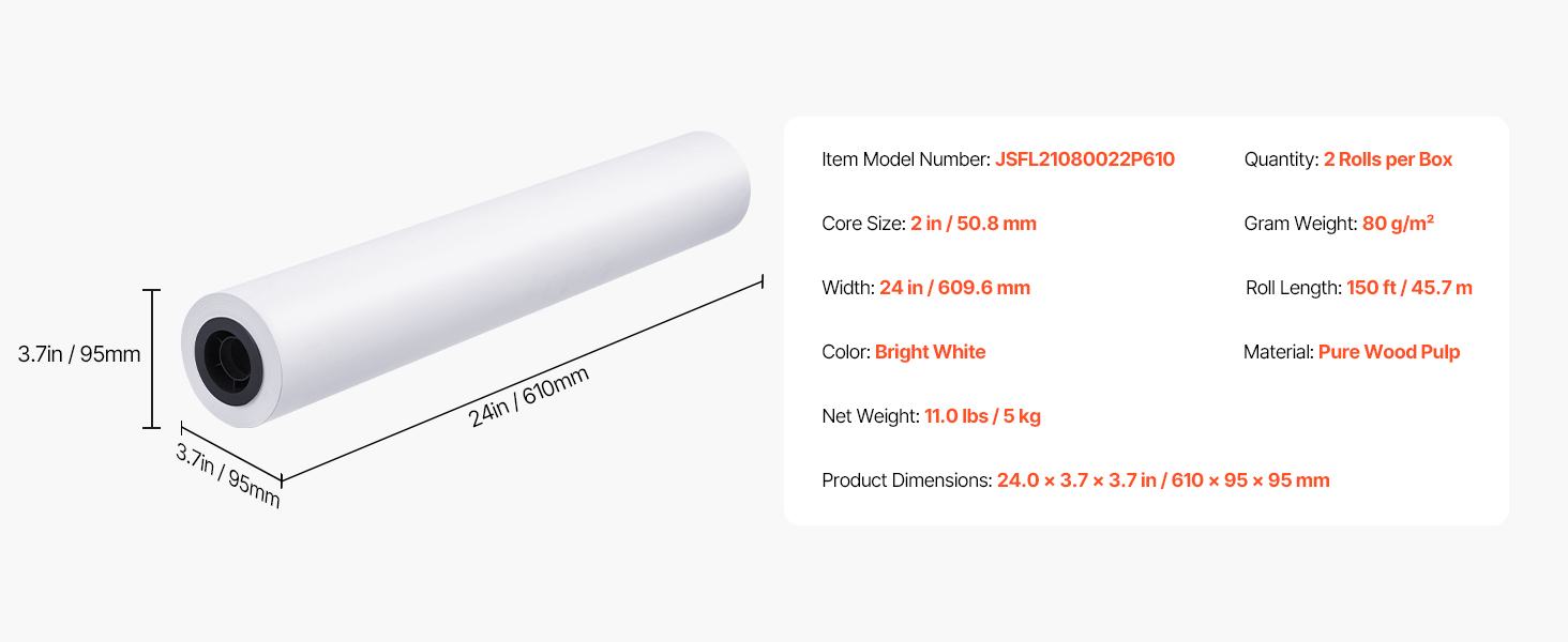 Toto balenie veľkoformátového papiera obsahuje dve rolky, každú širokú 24 palcov a dlhú 150 stôp, s presným meraním 80 g/m² pre konzistentné a vysokokvalitné výsledky. Dvojpalcové jadro je vhodné pre väčšinu štandardných plotrových tlačiarní.