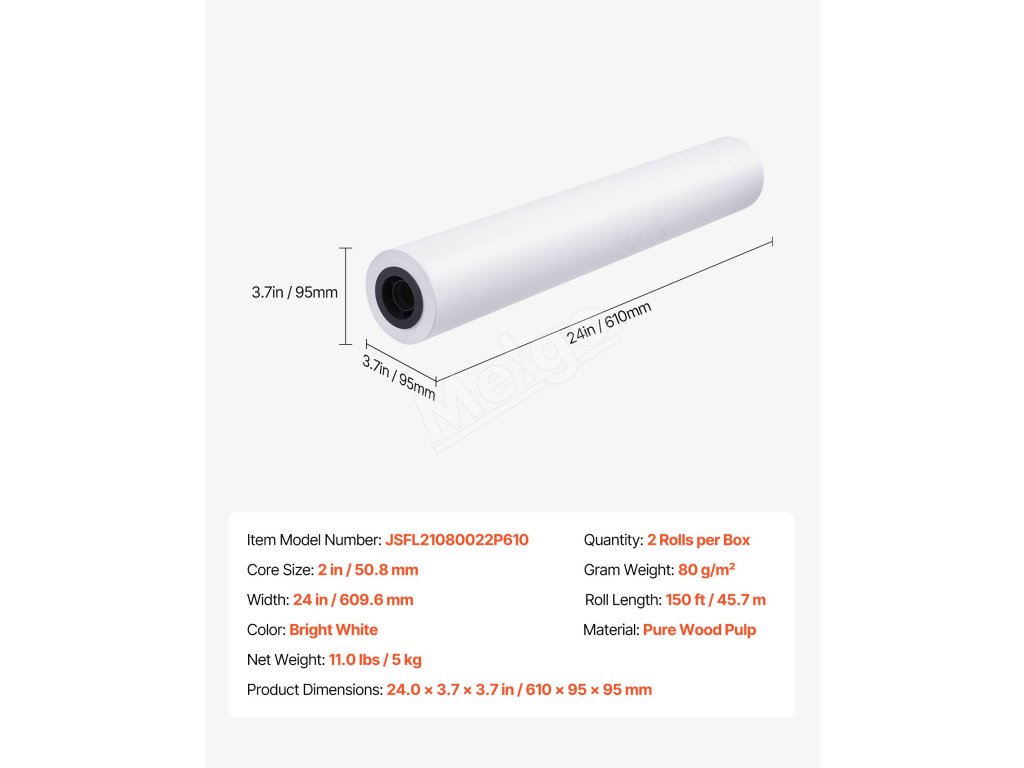 Toto balenie veľkoformátového papiera obsahuje dve rolky, každú širokú 24 palcov a dlhú 150 stôp, s presným meraním 80 g/m² pre konzistentné a vysokokvalitné výsledky. Dvojpalcové jadro je vhodné pre väčšinu štandardných plotrových tlačiarní.