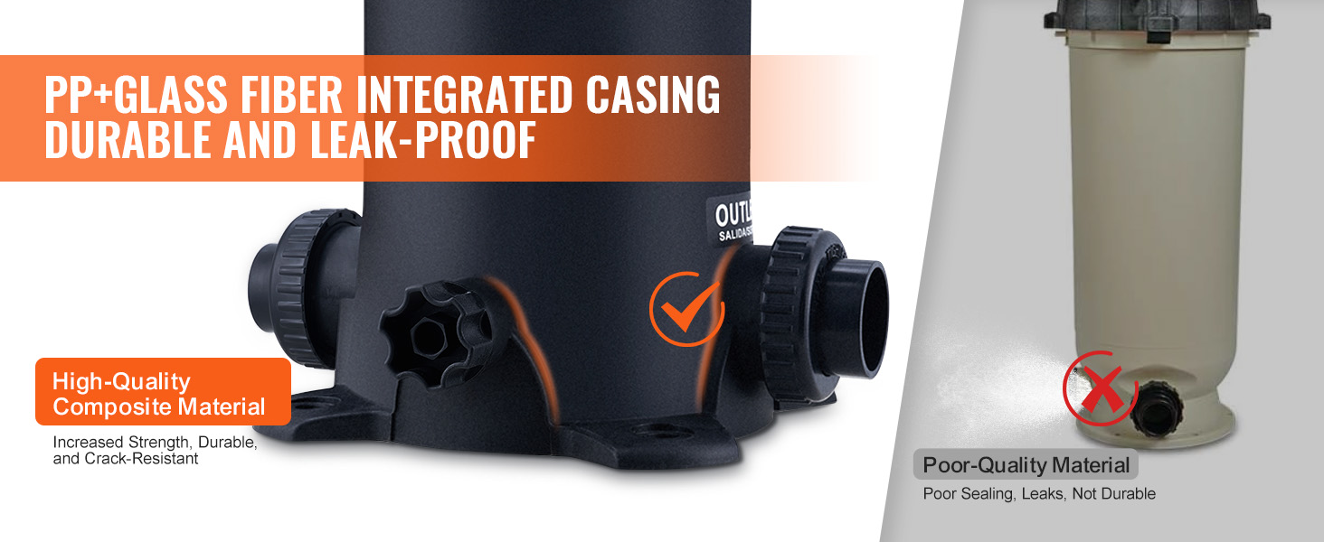 Je vyrobený z kompozitného materiálu PP + sklolaminát v jednodielnom tlakovom odliatku, je pevný a odolný a účinne zabraňuje únikom. Jedinečný bezšvový dizajn nielenže zlepšuje jeho vzhľad, ale tiež predlžuje životnosť filtra.