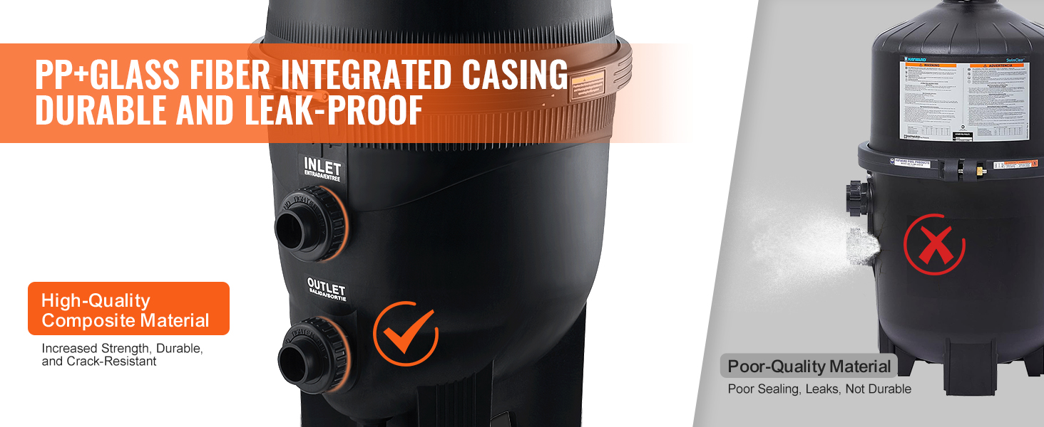 Náš robustný jednodielny kompozitný kryt zabraňuje únikom a chráni vnútorné komponenty pred poveternostnými vplyvmi. Obsahuje tlakomer na jednoduché monitorovanie a automatický poistný ventil namontovaný na hornej strane, ktorý zabraňuje výbuchu, a ponúka bezpečné a účinné riešenie čistenia vášho bazéna.