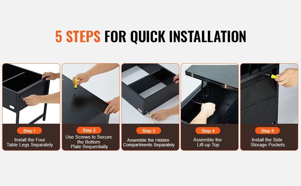 Vysúvací konferenčný stolík s priloženými dielmi, nástrojmi a návodom na montáž, montáž je jednoduchá. Stačí postupovať podľa pokynov krok za krokom na jednoduchú inštaláciu bez potreby odbornej pomoci, vhodné pre začiatočníkov.