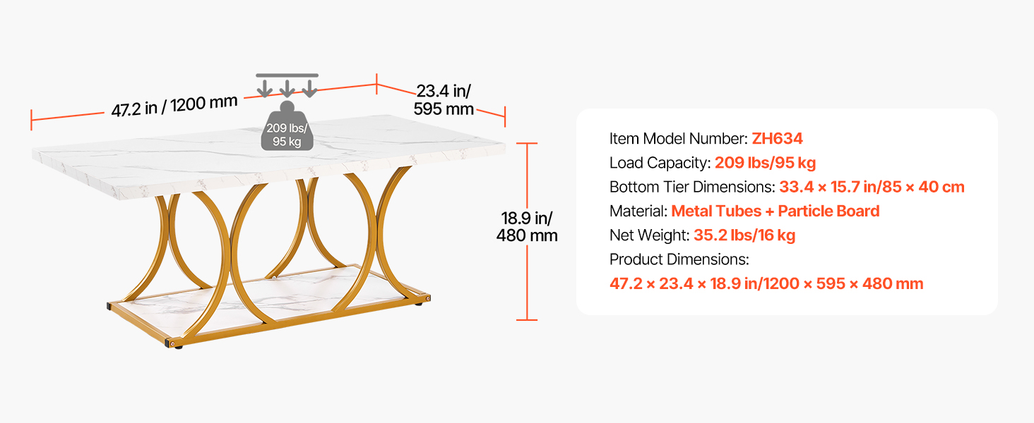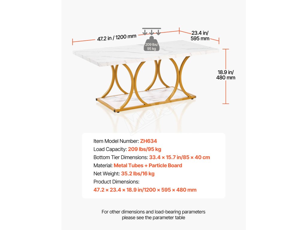 Tento drevený konferenčný stolík má klasickú dosku z umelého mramoru, ktorá je odolná voči vode a opotrebovaniu a vyžaduje len jednoduchú údržbu, aby si zachovala svoj svieži vzhľad. Geometrický kovový rám dodáva stolíku jedinečný industriálno-moderný nádych, ktorý sa bez problémov hodí do moderných, rustikálnych alebo vintage interiérov.