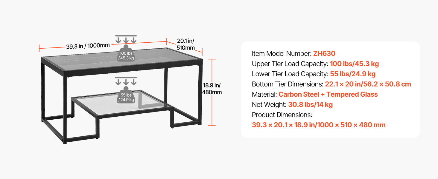 Tento konferenčný stolík má priestranné, priehľadné dvojúrovňové plochy z tvrdeného skla, ktoré zaručujú krásu a odolnosť. Obdĺžnikový kovový rám poskytuje eleganciu a stabilitu a podopiera vaše každodenné potreby bez toho, aby sa kýval. Je veľmi všestranne použiteľný so štýlom vašej obývačky a kancelárie.