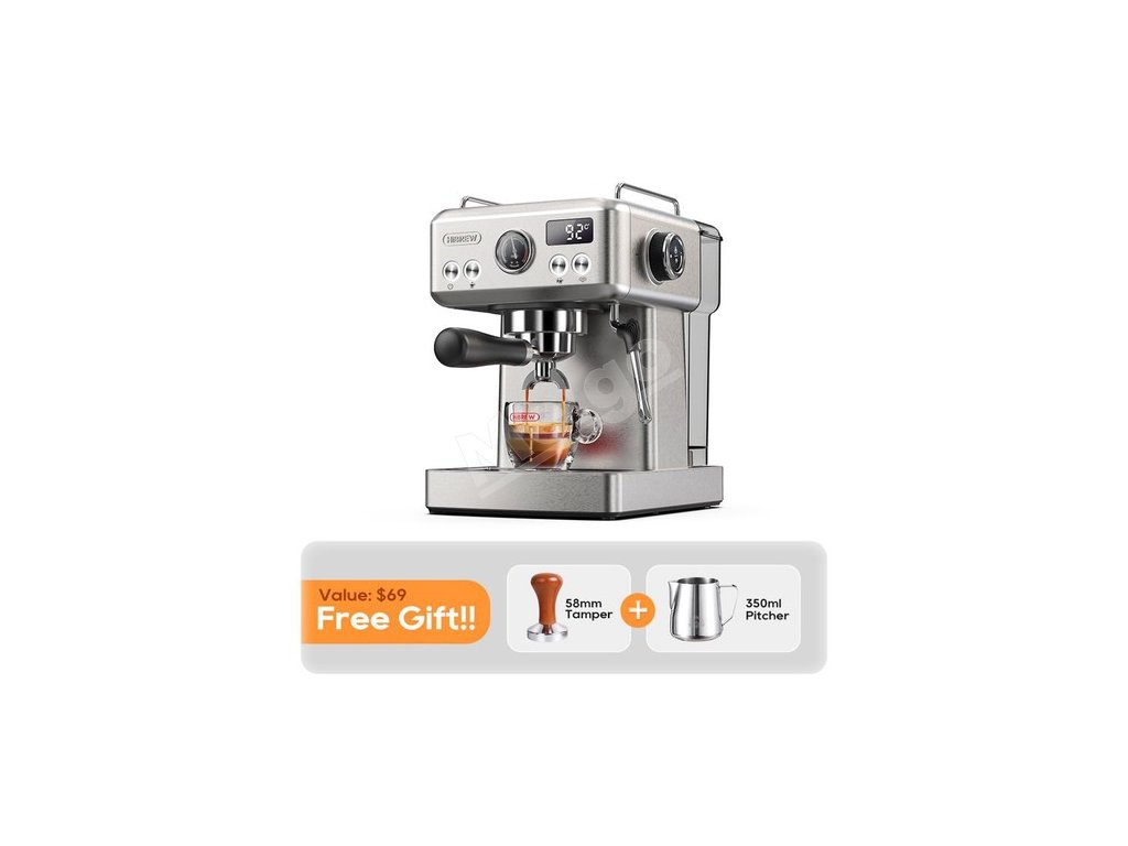 | Obsah balenia | 1 x Kávovar 1 x Miska na prášok na jednu šálku 1 x Miska na prášok na dve šálky 1 x Lžička na prášok so štetcovou hlavou 1 x 350ml džbán 1 x 58mm tamper na kávu 1 x 58mm rukoväť-portafilter 1 x Návod na použitie 1 x Mlynček na kávu G3 |
