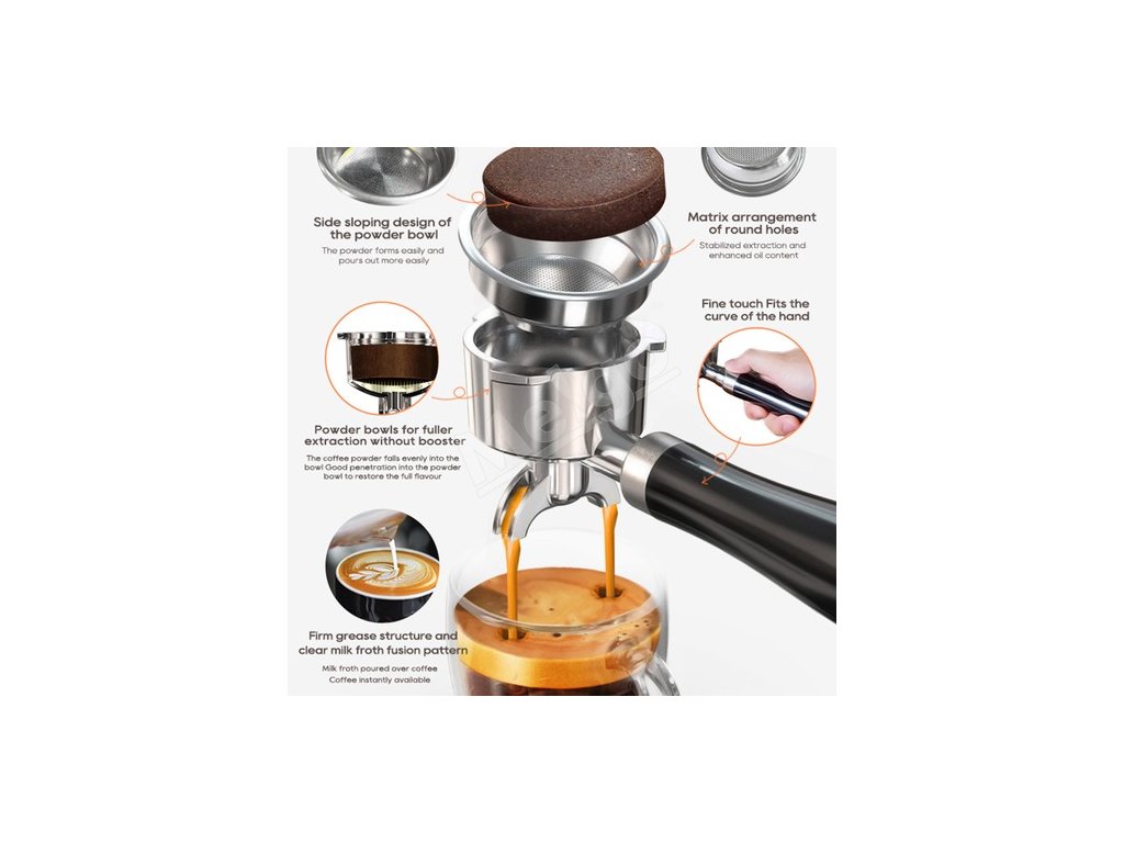 | Obsah balenia | 1 x Kávovar 1 x Miska na prášok na jednu šálku 1 x Miska na prášok na dve šálky 1 x Lžička na prášok so štetcovou hlavou 1 x 350ml džbán 1 x 58mm tamper na kávu 1 x 58mm rukoväť-portafilter 1 x Návod na použitie |