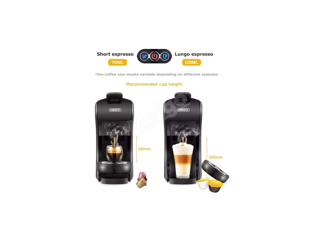 Má možnosti veľkosti šálky 70 ml malej kávy espresso a 110 ml veľkej kávy espresso, pričom veľkosť kávy sa môže líšiť v závislosti od rôznych kapsúl.