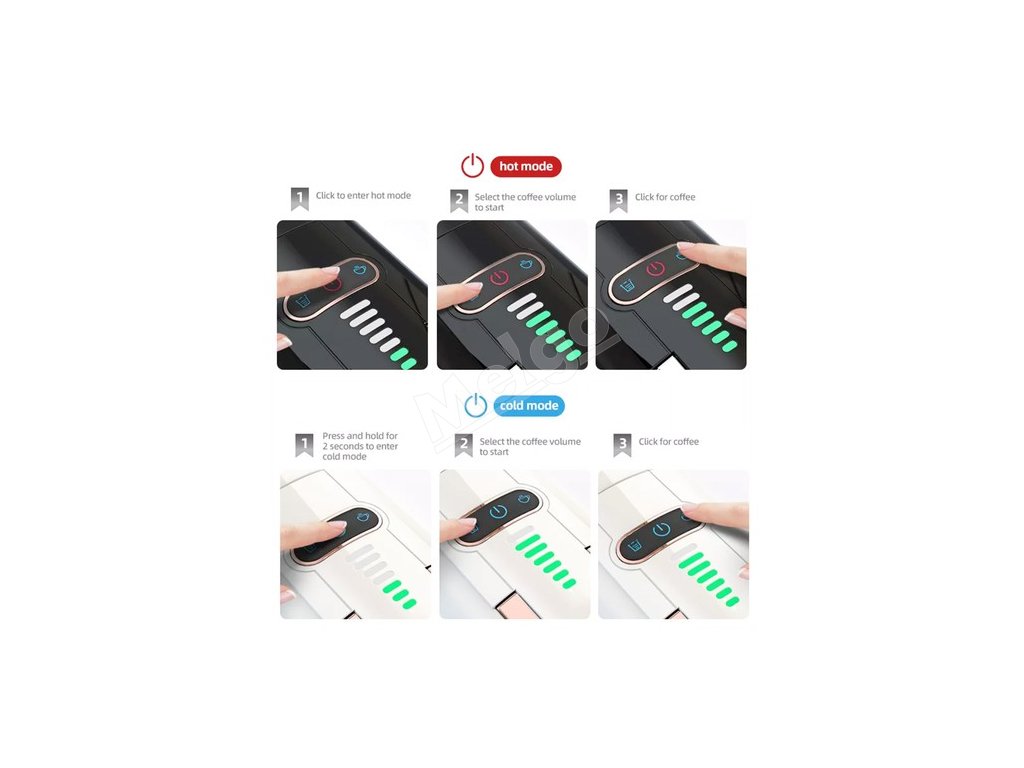 Kávovar na espresso s kapsulami má režimy studenej alebo horúcej kávy, takže si môžete pripraviť ľadovú kávu v lete a horúcu kávu v zime. (HORÚCI režim vyžaduje približne 35 sekúnd predhrievania).