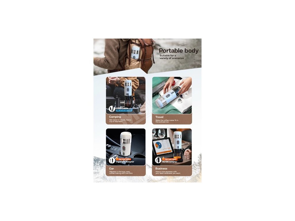 HiBREW H4A 80W Prenosný 3v1 Kávovar do Auta - Biely