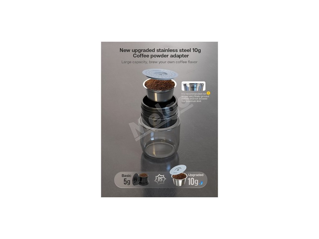 Tento kávovar je vybavený 3 adaptérmi: Adaptér na kapsule Nes, adaptér na kapsule DG a adaptér na 10 g práškovej kávy z nehrdzavejúcej ocele, takže si vždy nájdete ten svoj nápoj.