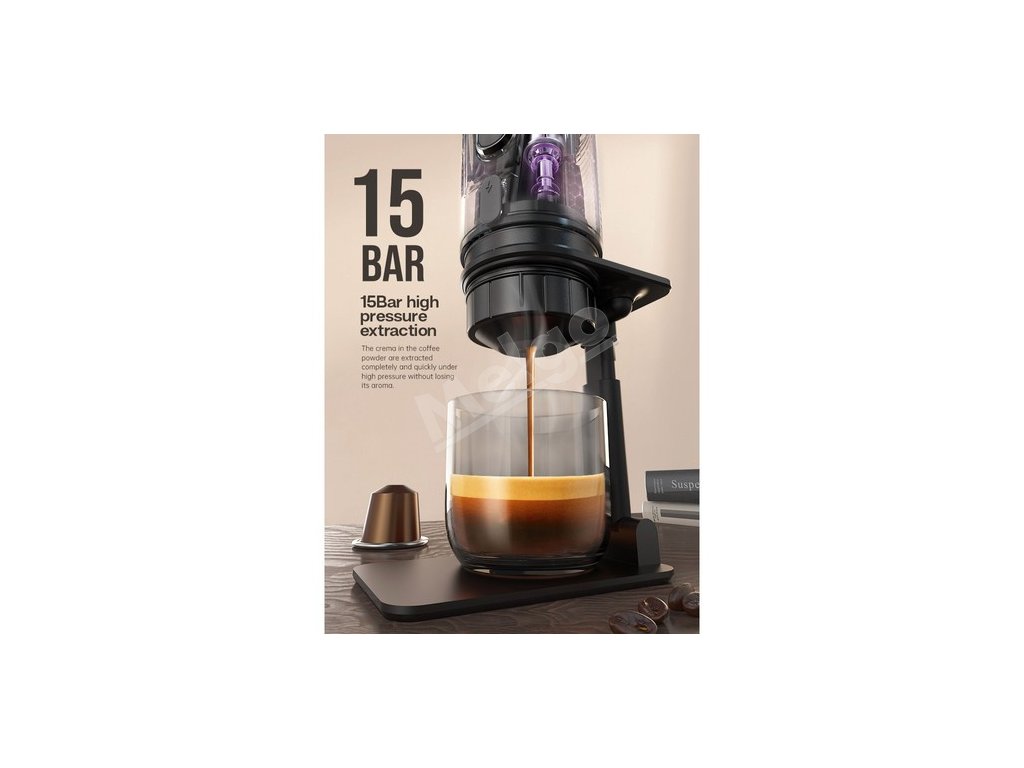 Tento 12 V kávovar je vybavený silou tlaku 15 barov, ktorá dokáže ponúknuť stabilný tlak na extrakciu vysokokvalitnej kávy z kávovej kapsule/prášku.