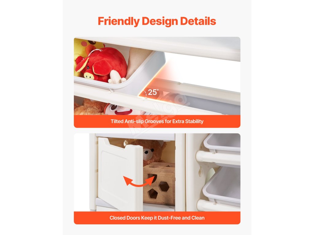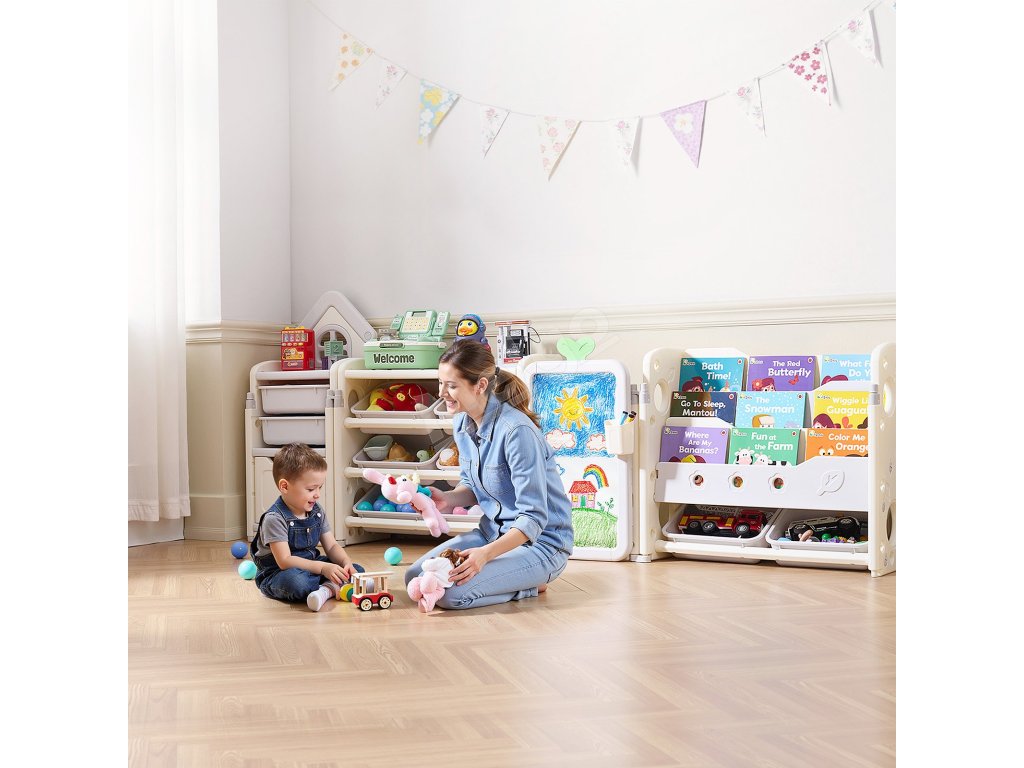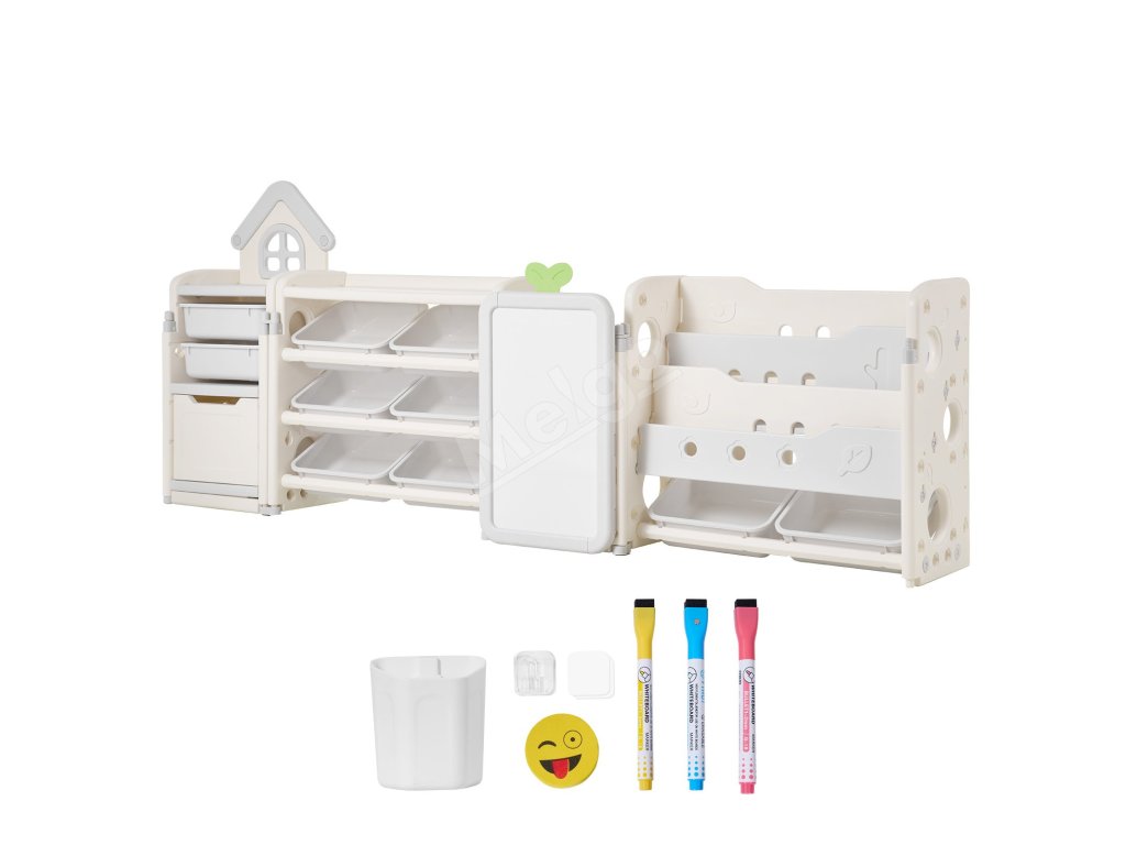 Tento organizér na hračky pre deti predstavuje ideálne riešenie na ukladanie hračiek, kníh, písacích potrieb, kociek a ďalších vecí. Vďaka zábavnému a pútavému dizajnu pomáha deťom rozvíjať zručnosti samostatného skúmania a procesu organizovania a zároveň podporuje dobré návyky pre uprataný priestor.