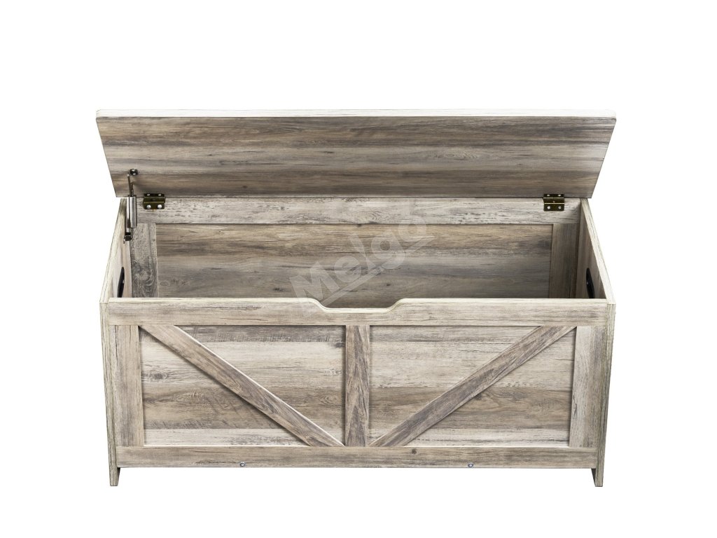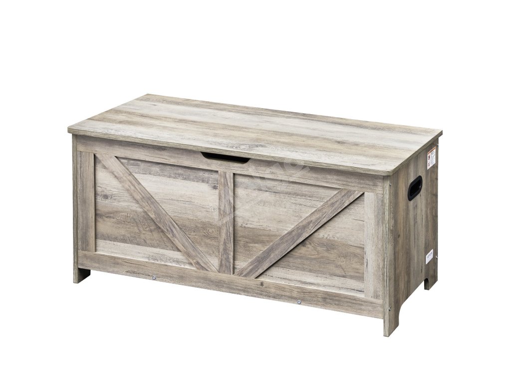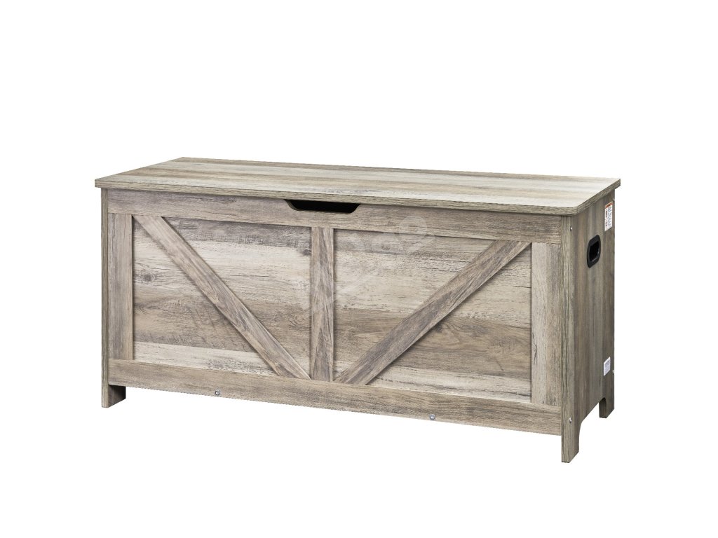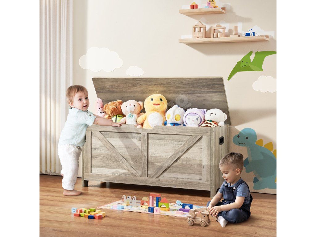 Drevená detská truhlica na hračky s pántom šedá, 38.98×15.55×18.9"