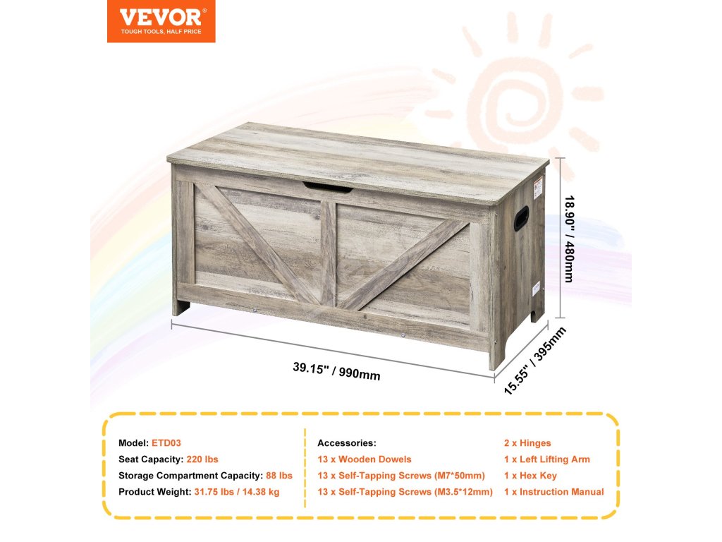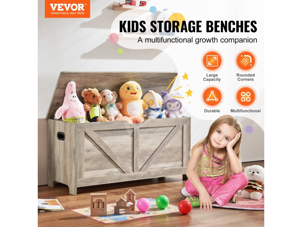 VEVOR Detská úložná lavica - udržujte priestor vášho dieťaťa organizovaný a bezpečný!