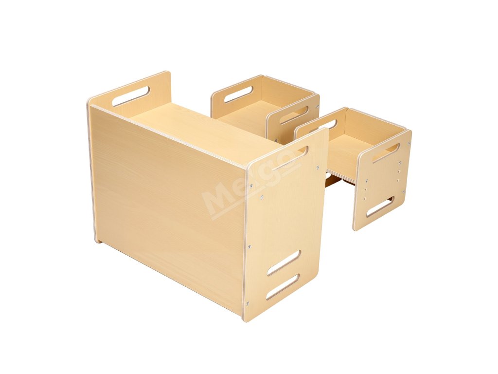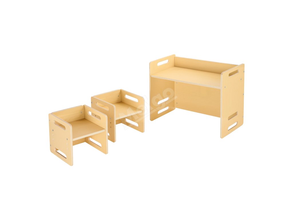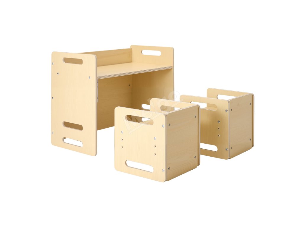 Montessori drevený stolík s 2 stoličkami, nastaviteľná výška pre deti