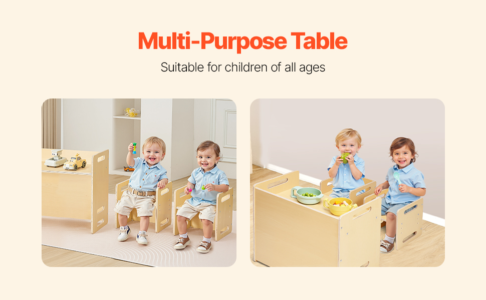 Naša súprava stola a stoličky Montessori na odstavenie dieťaťa funguje ako stabilná stolička a rýchlo sa premení na priestranný stôl, takže je vhodná pre deti každého veku.
