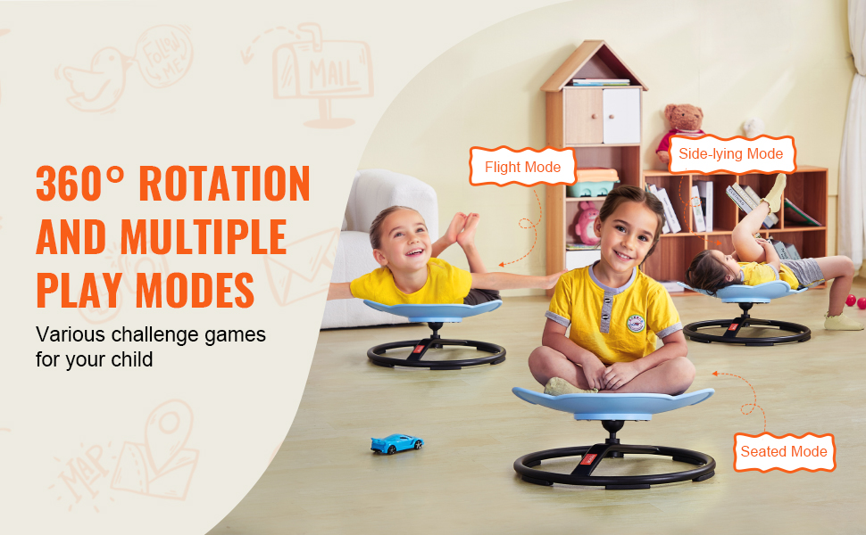 Vďaka 360° otáčaniu a viacerým možnostiam hry môžu deti sedieť, ležať, otáčať sa na senzorickej otáčacej stoličke a vytvárať si vlastné hry. Rodičia sa tiež môžu zapojiť do zábavnej interaktívnej hry, čo z nej robí skvelú rodinnú hračku.