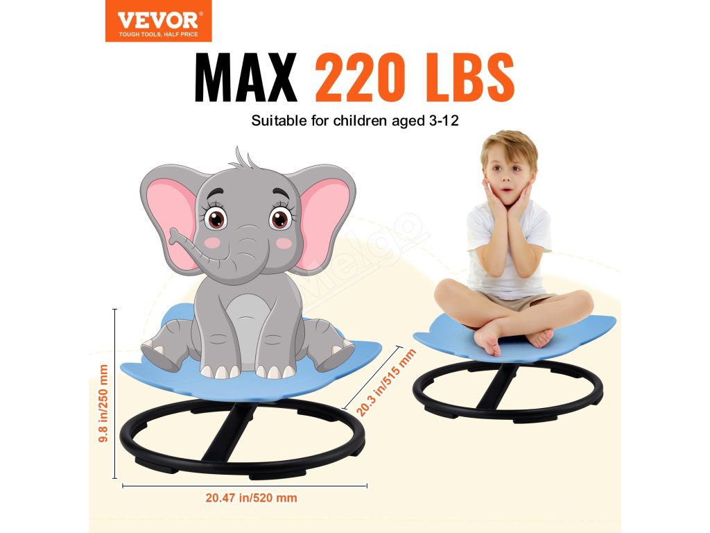 Táto 360° otočná stolička zapája vestibulárny systém detí, zlepšuje koordináciu a rovnováhu. Je vybavená robustnou 20,5-palcovou kovovou základňou, unesie až 220 kg a má polstrované sedadlo pre väčšie pohodlie. Protišmykový dizajn a hladké hrany zaisťujú bezpečnosť. Ľahko sa montuje, je ideálna na domáce použitie.