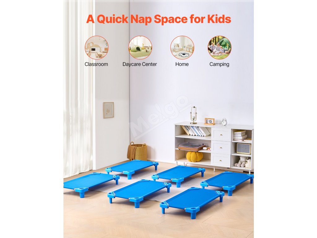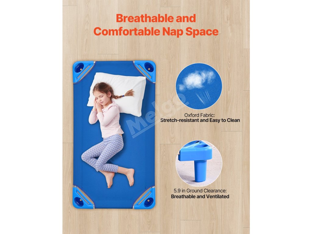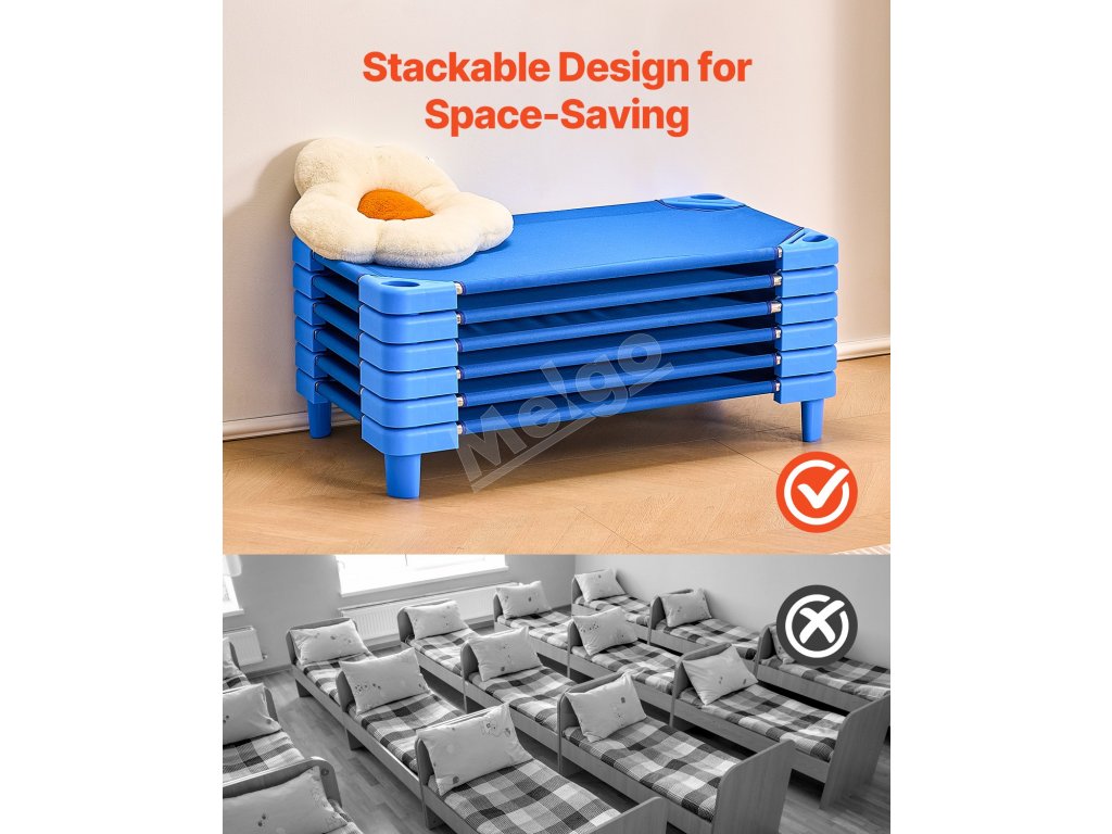 Táto prenosná postieľka na spanie pre batoľatá sa dá poskladať až na 20 lôžok, takže je ideálna na úsporu miesta v triedach, materských školách, škôlkach alebo dokonca pri kempovaní.