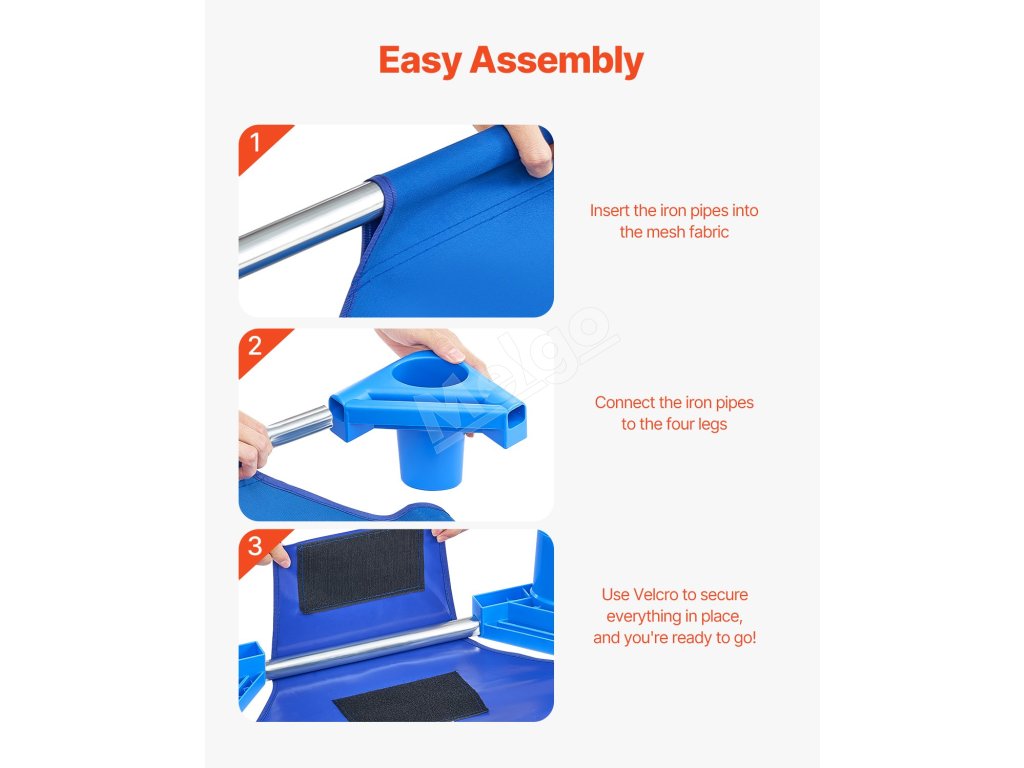 Nie je potrebné žiadne náradie! Stačí spojiť rúrky, pripevniť oporné nožičky a zaistiť látku pomocou suchého zipsu. Je to také jednoduché - vaša detská postieľka na spanie je pripravená v okamihu!