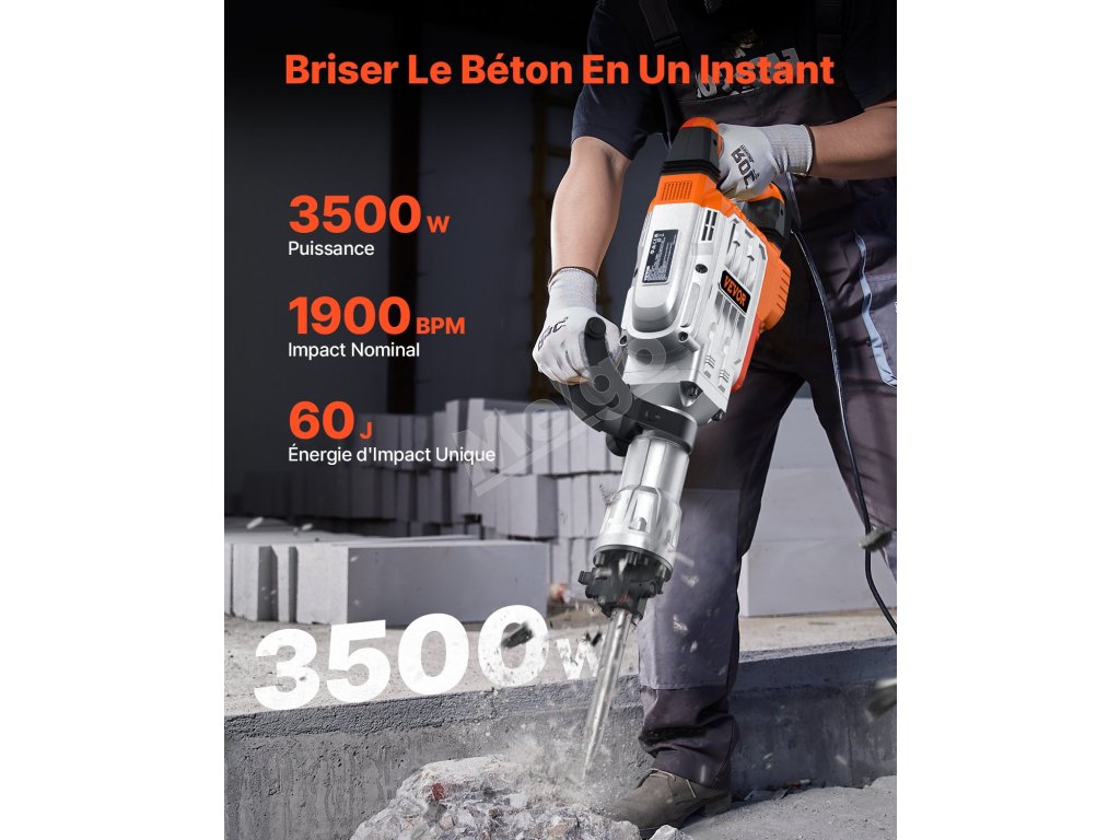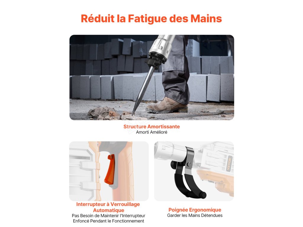 Elektrické sekacie kladivo VEVOR má 3500W motor, ktorý poskytuje vysokú energiu úderu 60 joulov. S týmto výkonom môžete rozbíjať betón, kameň alebo kov. Pracuje rýchlo a zostáva stabilné aj pri dlhom používaní na tvrdých povrchoch. Motor beží stále, aj keď je zaťaženie veľké, čo vám umožní vykonávať akúkoľvek veľkú alebo malú prácu bez namáhania. Vnútorné komponenty sú starostlivo zostavené, aby zabezpečili stabilný výkon vždy, keď ho budete používať.