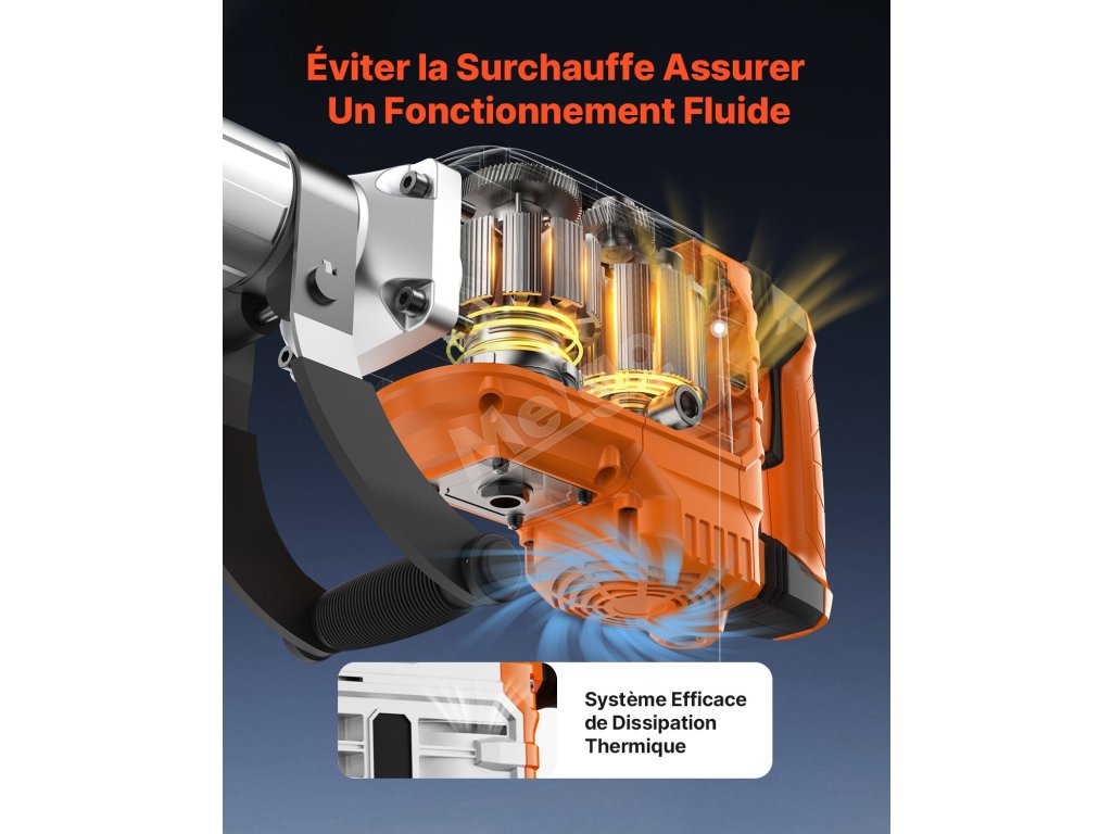 Keď dlho používate ťažké náradie, často sa rýchlo zahreje, ale toto elektrické sekacie kladivo VEVOR zostáva chladné aj počas náročnej práce. Má inteligentný chladiaci systém, ktorý nasáva vzduch cez motor, aby rýchlo odvádzal teplo. Vďaka tomu sa udržiava stabilná teplota stroja, čo mu umožňuje dlhšiu prevádzku bez problémov. Nemusíte často zastavovať, aby ste ho nechali vychladnúť, čo vám pomôže rýchlejšie dokončiť prácu.