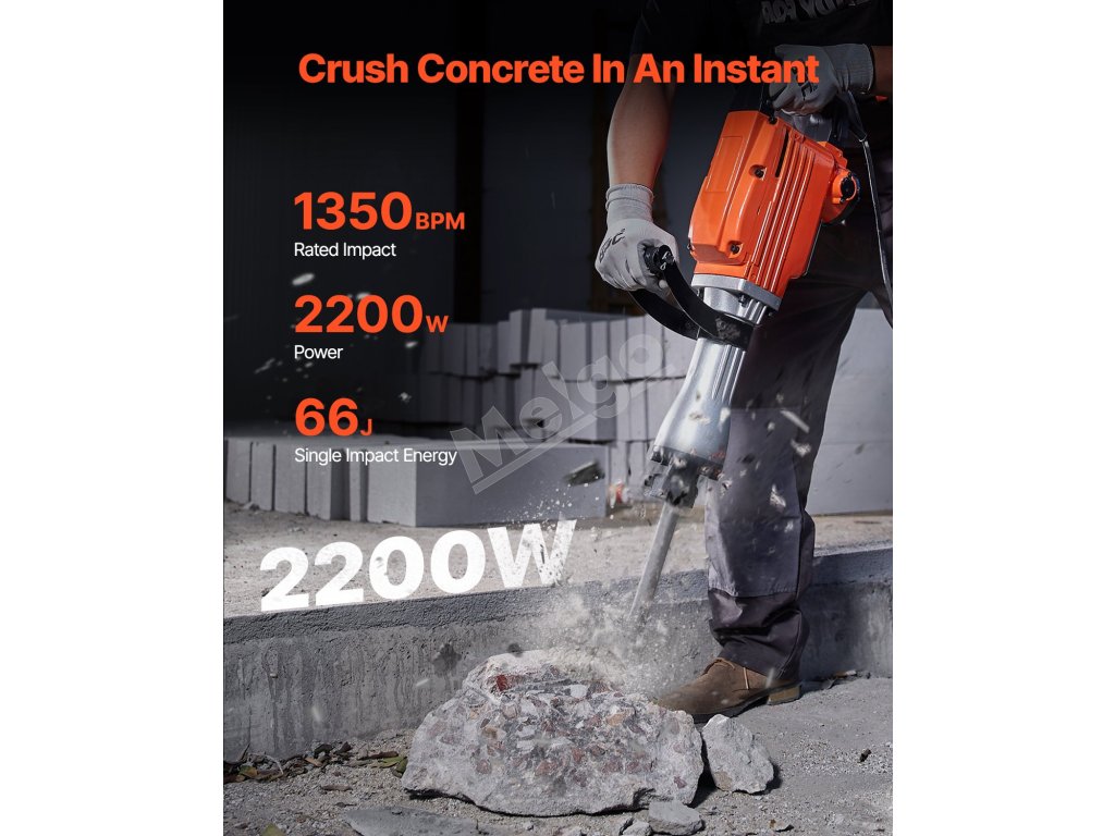 Demolačné elektrické kladivo rozbíjač betónu 2200W s 2 sekáčmi