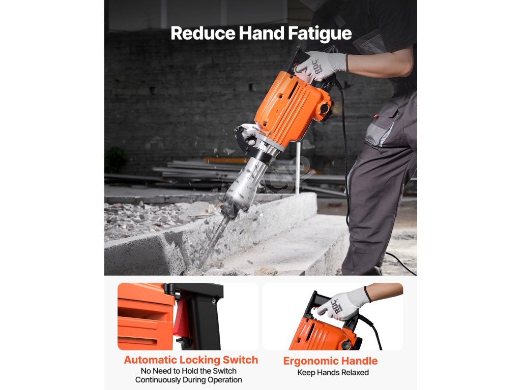 Motor z čistej medi prichádza so silným výkonom 2200 W, ktorý poskytuje 1350 úderov za minútu, aby ste ľahko prerazili betón, tehly, zeminu a zeminu. Vysoká nosnosť a vyššia účinnosť znamenajú aj vyššiu produktivitu.