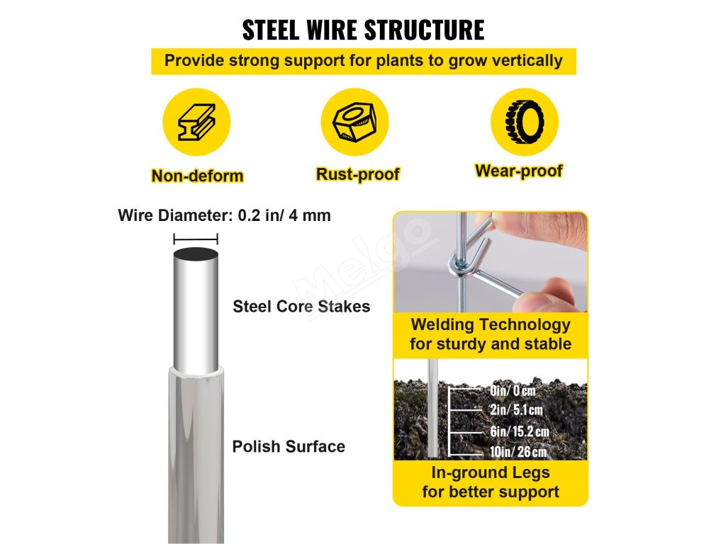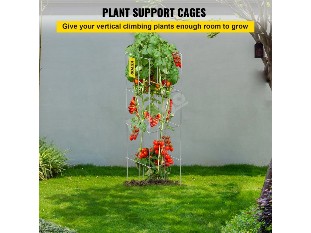Dodáva sa s 5 sadami 3-úrovňových klietok, veľkosť každej sady je 11,8" D x 11,8" Š x 16,1 "V/ 30 x 30 x 117 cm, vrátane 10"/ 26 cm nôh. Max. 59.1"/ 150 cm vysoká rastlina môže stabilne stáť aj v pôde.