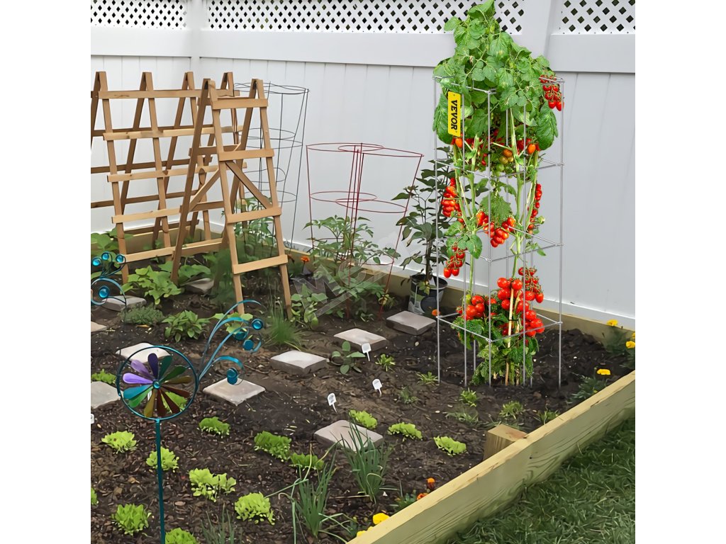Skladacie klietky na paradajky sa dajú zostaviť do rôznych tvarov podľa vašich rôznych potrieb. Pri inštalácii klietok do nepravidelných, napoly zložených a plochých tvarov dbajte na hĺbku nožičiek v zemi.