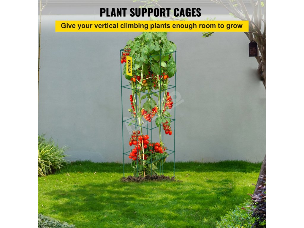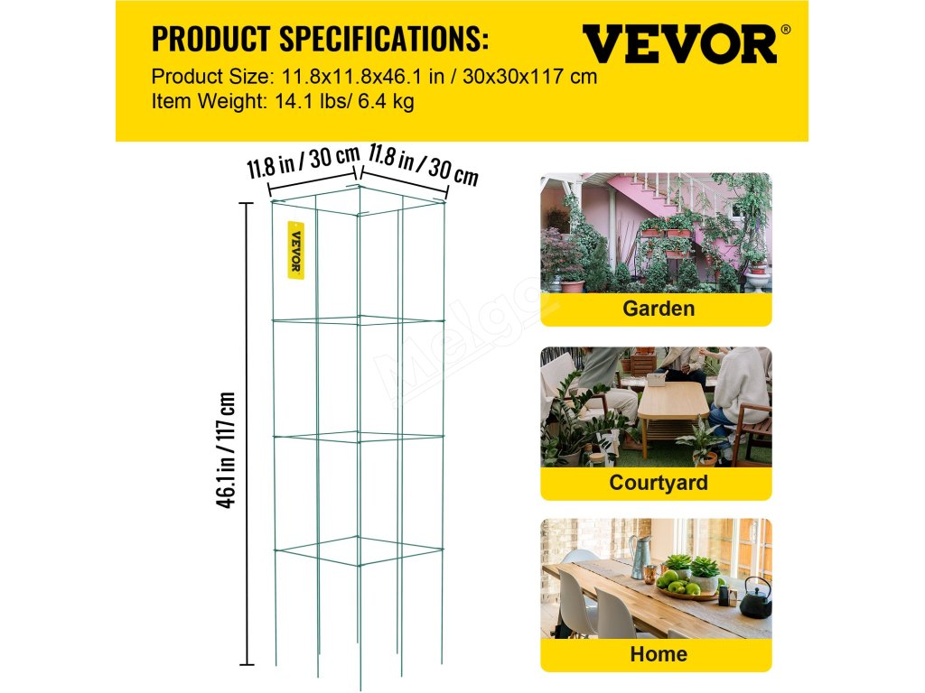 Dodáva sa s 5 sadami 3-úrovňových klietok, veľkosť každej sady je 11,8" D x 11,8" Š x 16,1 "V/ 30 x 30 x 117 cm, vrátane 10"/ 26 cm nôh. Max. 59.1"/ 150 cm vysoká rastlina môže stabilne stáť aj v pôde.