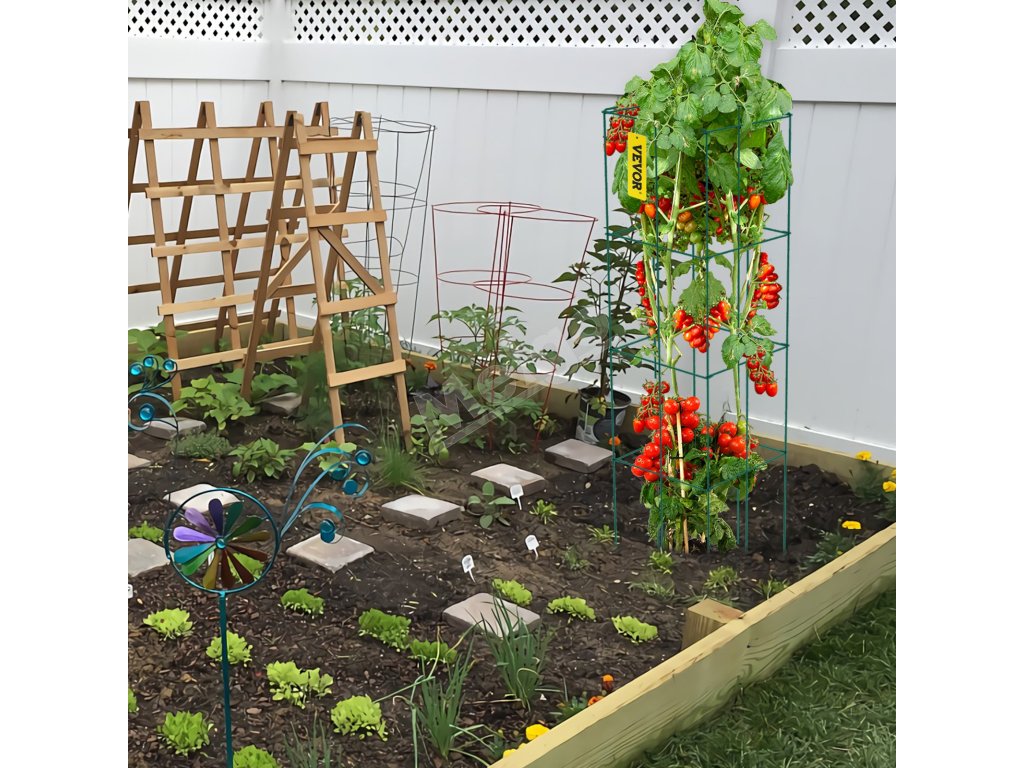 Na rozdiel od tých vertikálne rastúcich rastlín bez opory klietok na paradajky sa rastliny s pomocou našich klietok na paradajky ľahšie zbierajú. Ideálne pre ovocné, zeleninové a iné popínavé rastliny.