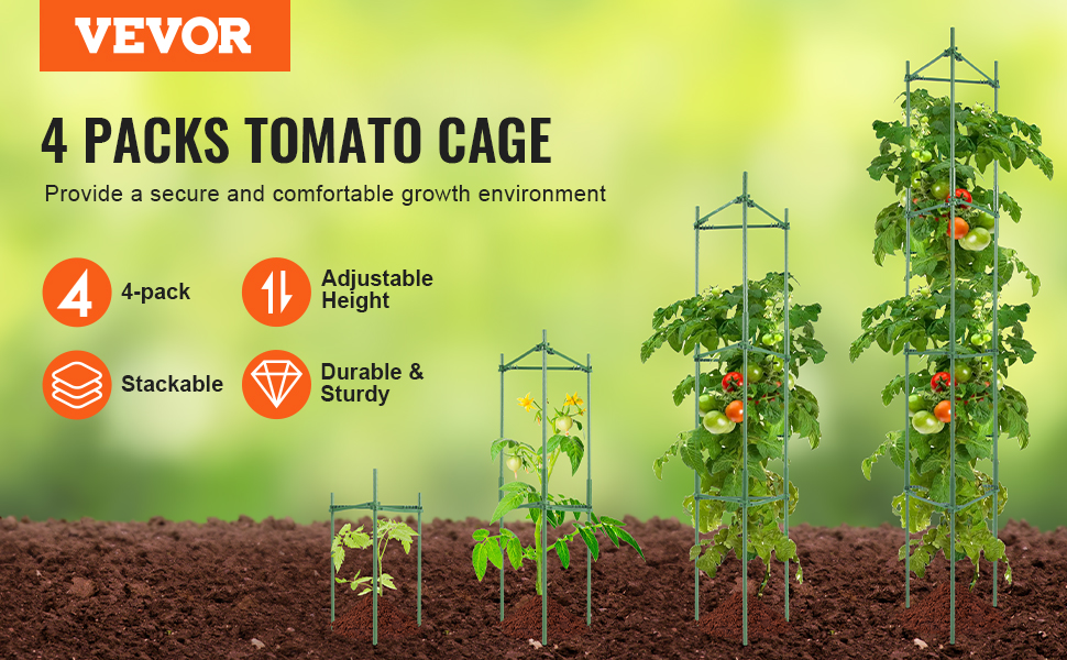 Táto klietka na paradajky je stohovateľná a prispôsobiteľná, čo vám umožní nastaviť jej výšku podľa vašich potrieb. Je ideálna na podporu rastlín v rôznych štádiách rastu a poskytuje dostatok priestoru na ich vývoj.