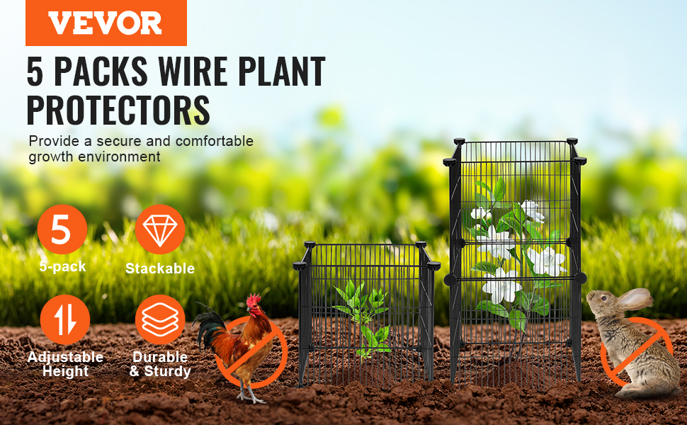 Tento chránič rastlín pred zvieratami je stohovateľný a prispôsobiteľný, čo vám umožní nastaviť jeho výšku podľa vašich potrieb. Je ideálny na podporu rastlín v rôznych štádiách rastu a poskytuje dostatok priestoru na ich rozvoj.