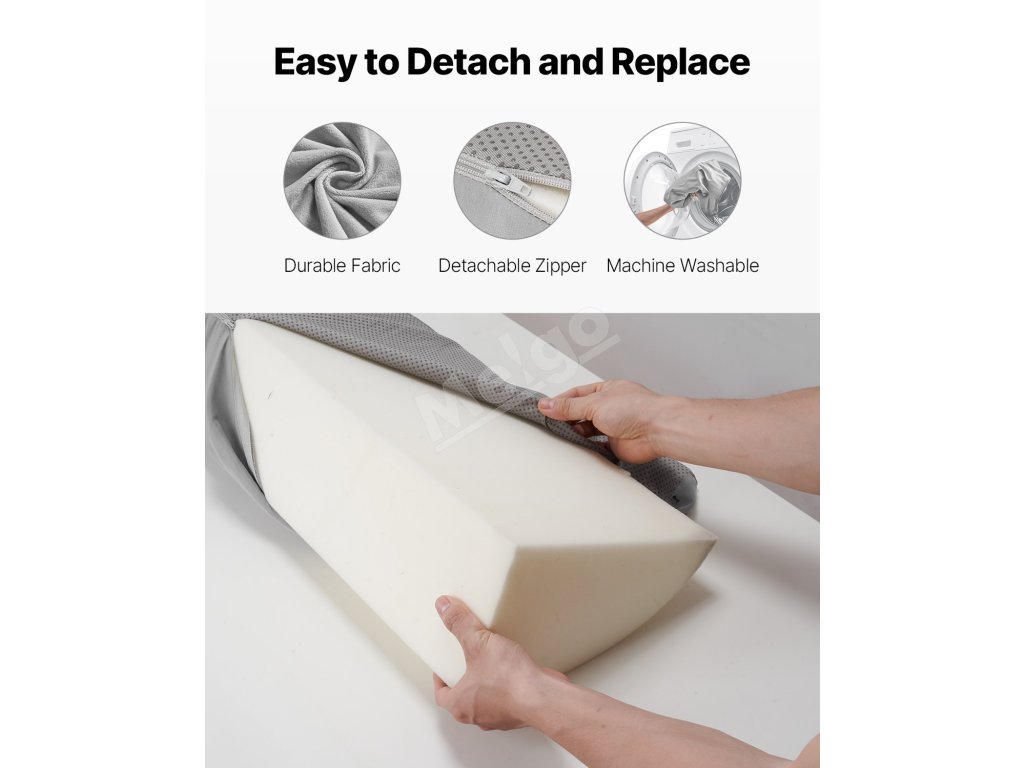 Vankúš na vyplnenie medzier pod čelom matraca má odnímateľnú konštrukciu na jednoduchú výmenu a čistenie. Možno ho prať v práčke v studenej vode a v šetrných cykloch, čím sa účinne znižuje prašnosť a nečistoty a zároveň sa zachováva mäkkosť a pohodlie pre čisté prostredie na spanie.