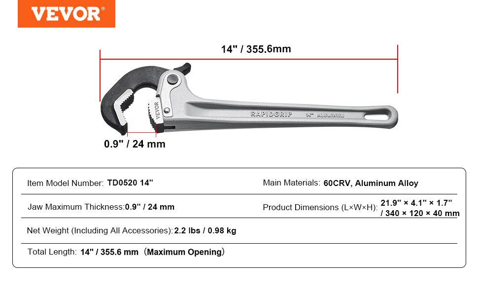 Zvládnite náročné úlohy s 14" priamym kľúčom na rúry VEVOR!