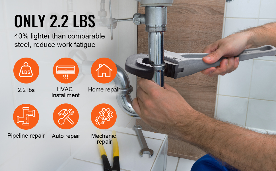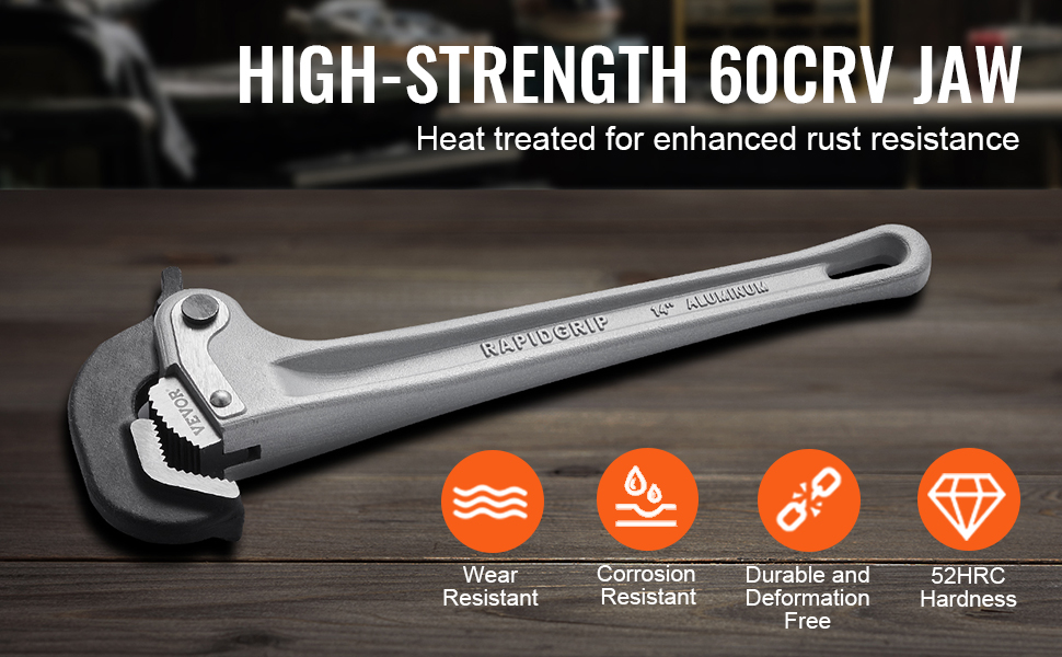 materiál 60CRV poskytuje vynikajúcu pevnosť a tvrdosť, odoláva dlhodobému opotrebovaniu a korózii. Náš hliníkový kľúč na rúry spoľahlivo funguje aj vo vlhkom alebo drsnom prostredí bez toho, aby hrdzavel.