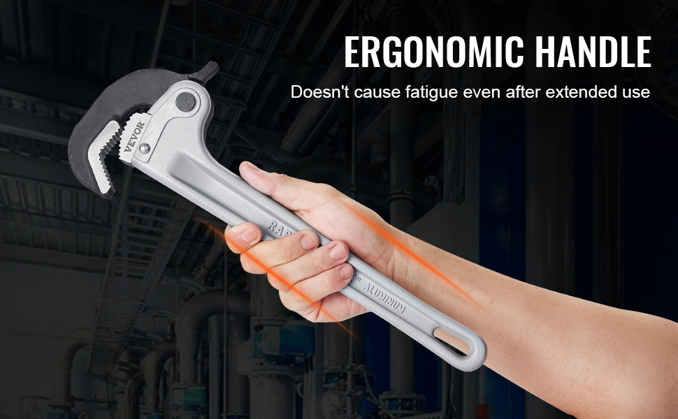 Náš hliníkový priamy rúrový kľúč, skonštruovaný s rukoväťou z hliníkovej zliatiny, je o 40 % ľahší ako jeho oceľové náprotivky. Táto konštrukcia je mimoriadne vhodná na dlhodobé používanie alebo časté prenášanie, čím sa minimalizuje únava.