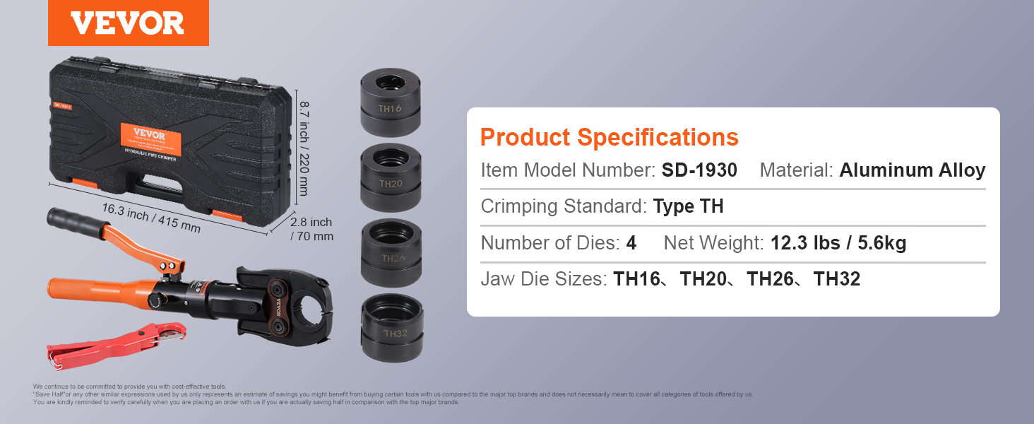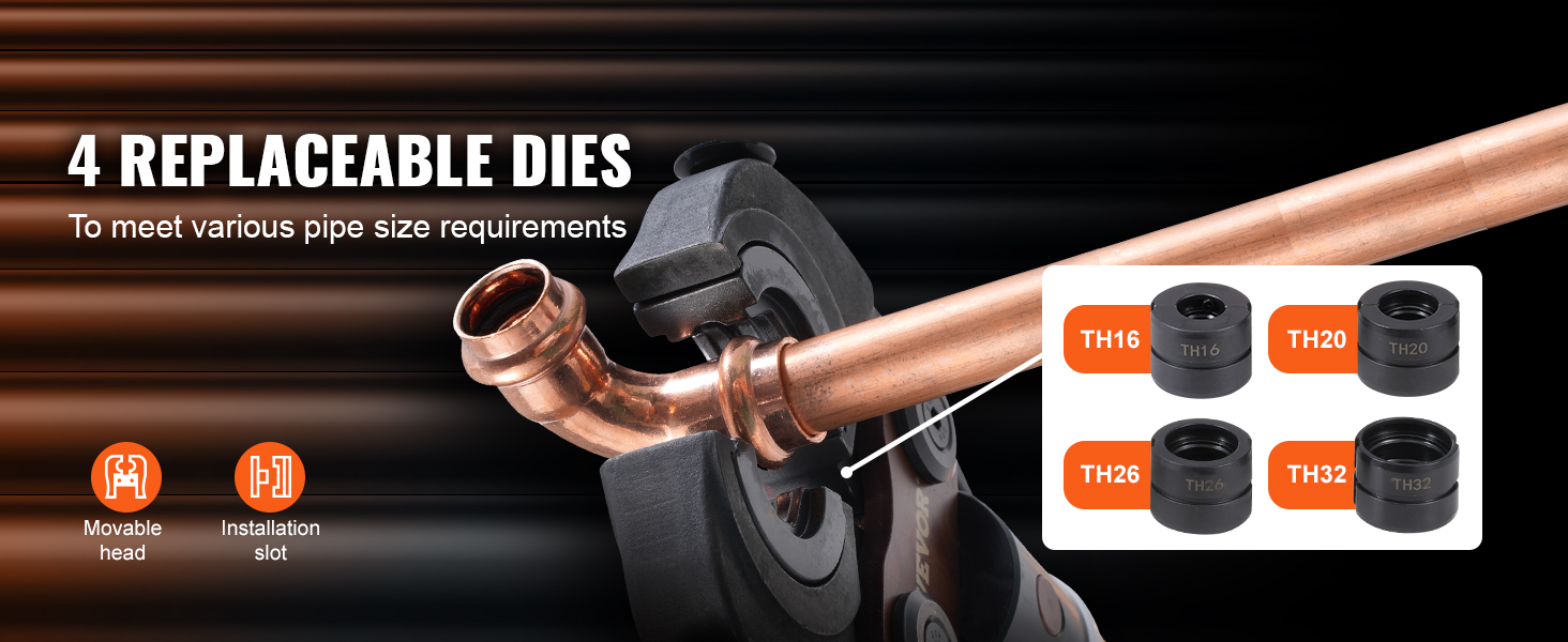Náš lisovací nástroj na meď je vybavený 4 lisovacími matricami, ktoré pokrývajú rozmery TH16, TH20, TH26, TH32, čím spĺňajú potreby lisovania rôznych veľkostí rúr.