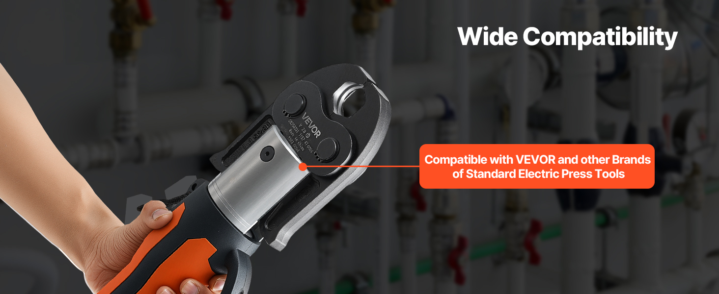 Táto lisovacia čeľusť je kompatibilná so štandardným elektrickým lisovacím náradím VEVOR (model PZ-1550) a inými značkami (modely CT-400, RP310, RP310PLUS, RP318, RP320-E, RP330-B, RP330-C, RP340, RP350, RP351, M18).