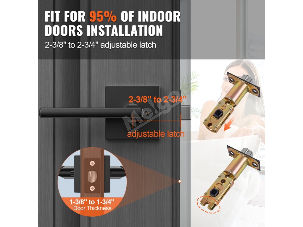 Naša čierna dverová kľučka je navrhnutá s funkciou zamykania, aby chránila vaše súkromie zvnútra. Je vybavená nastaviteľnou západkou s rozmermi 2-3/8 palca alebo 2-3/4 palca, vhodnou pre dvere s hrúbkou od 1-3/8 palca do 1-3/4 palca. Kompatibilná s viac ako 95 % interiérových dverí.