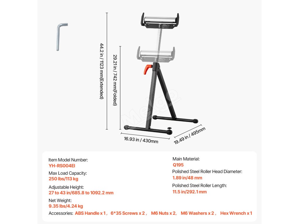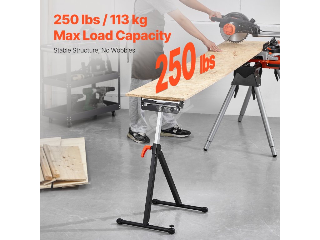 Skladací valčekový stojan sa vyznačuje jednoduchým skladovaním, maximálnou nosnosťou 250 libier a nastaviteľnou výškou od 27 do 43 palcov. Hladká 11,5-palcová valčeková hlava umožňuje bezproblémový pohyb veľkých panelov ako predĺženie stolovej píly, vďaka čomu budú vaše drevárske úlohy hračkou.