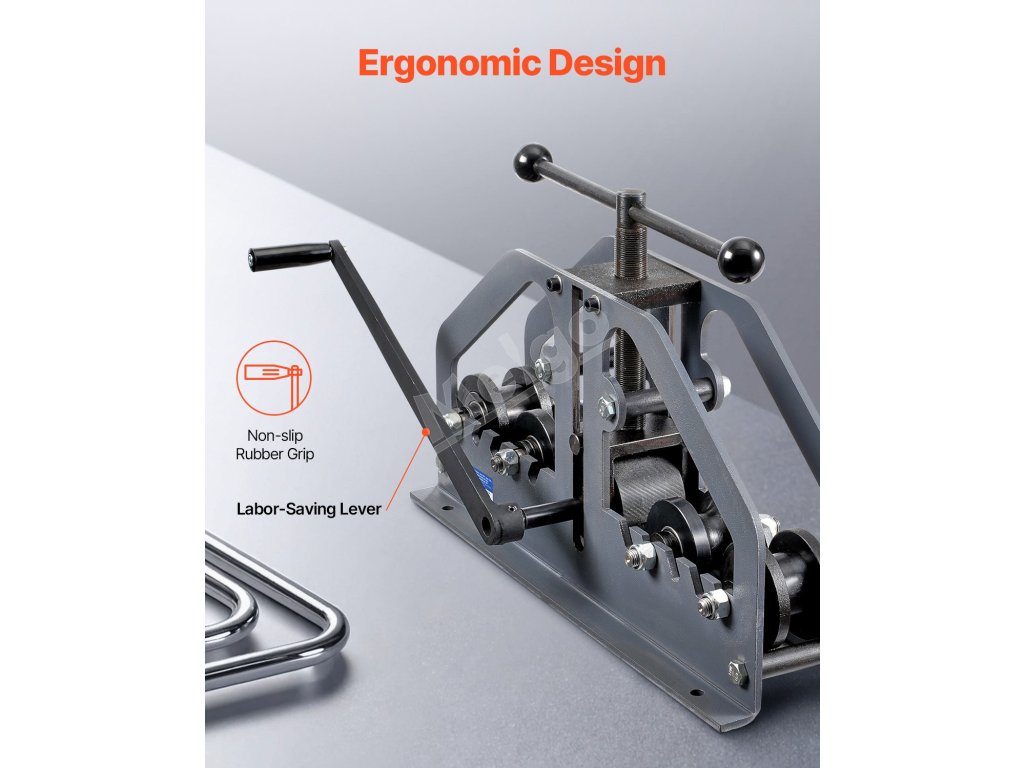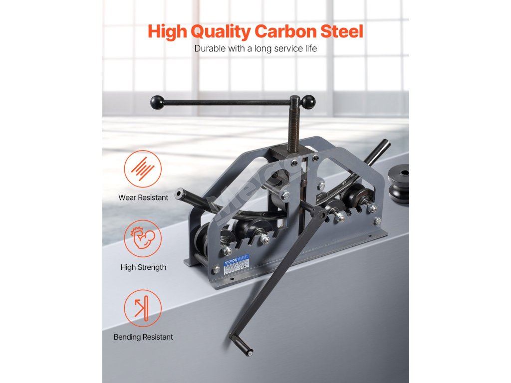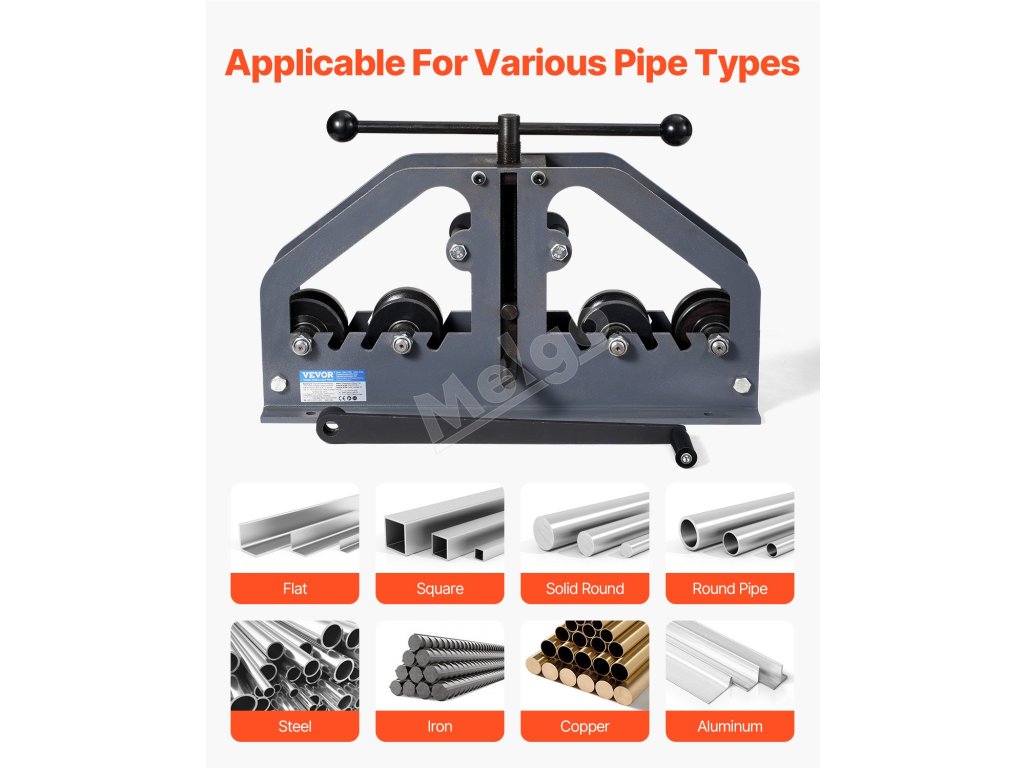 Táto valcová ohýbačka rúr bez problémov pracuje s oceľou, železom, meďou a hliníkom, vďaka čomu je ideálna na použitie pri opravách klimatizácie, spracovaní kovov, v stavebníctve, pri výrobe kovového nábytku a údržbe potrubia.