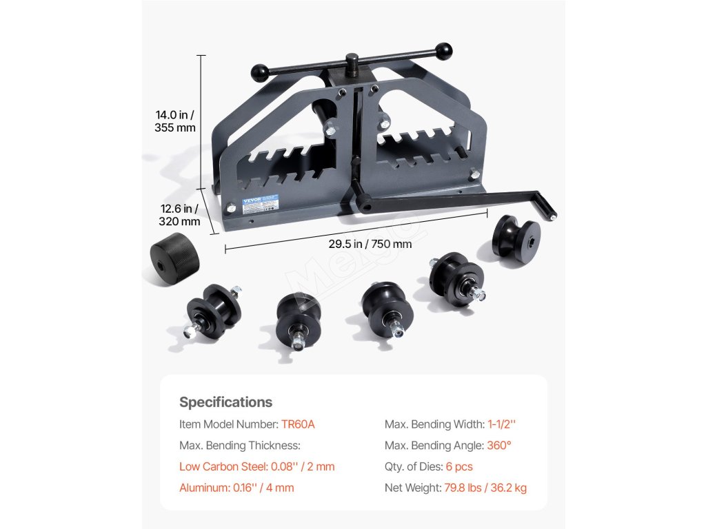 Valcová ohýbačka rúr VEVOR kombinuje výnimočné ohýbacie schopnosti s odolnou konštrukciou, čo z nej robí základný nástroj pre projekty spracovania kovov. Dokáže ohýbať rúry až do šírky 1-1/2" s maximálnym uhlom ohybu 360° a dodáva sa so 6 prémiovými matricami, ktoré zabezpečujú vysokú účinnosť a kvalitu ohýbania.