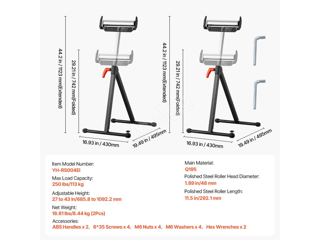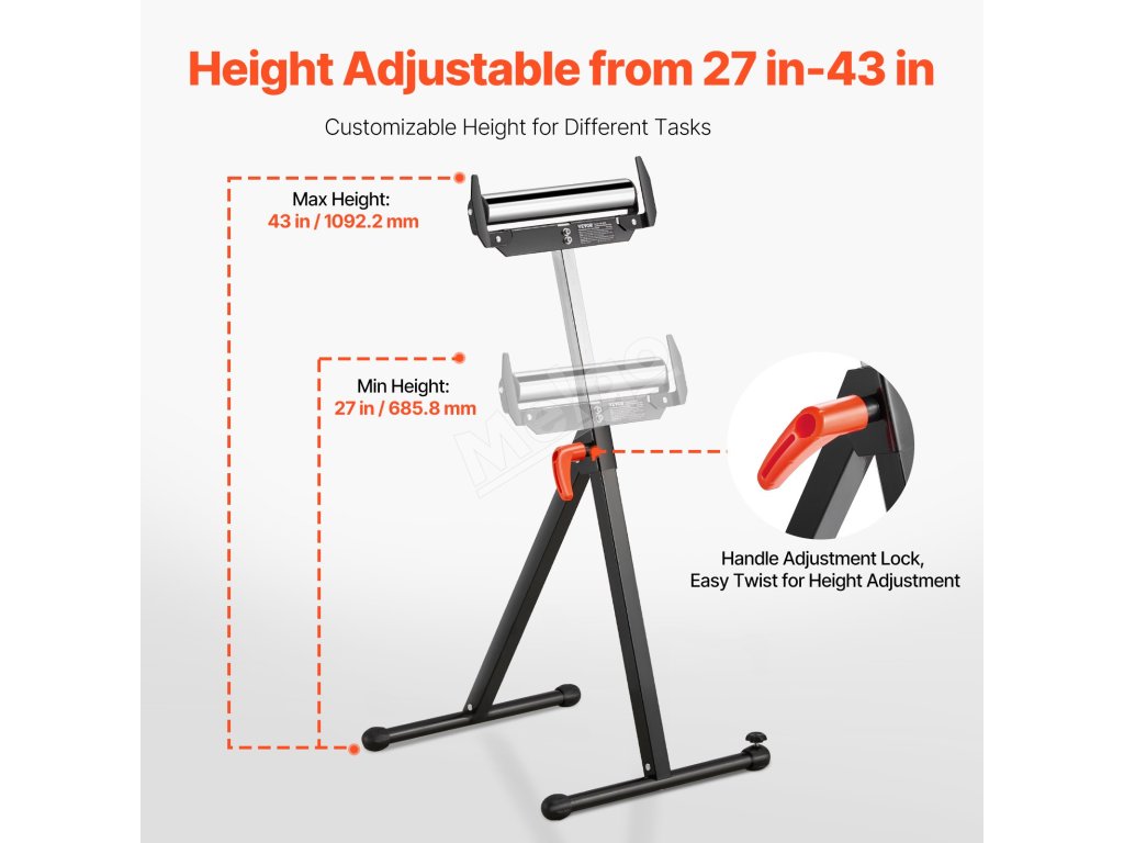 Skladací valčekový stojan sa vyznačuje jednoduchým skladovaním, maximálnou nosnosťou 250 libier a nastaviteľnou výškou od 27 do 43 palcov. Hladká 11,5-palcová valčeková hlava umožňuje bezproblémový pohyb veľkých panelov ako predĺženie stolovej píly, vďaka čomu budú vaše drevárske úlohy hračkou.