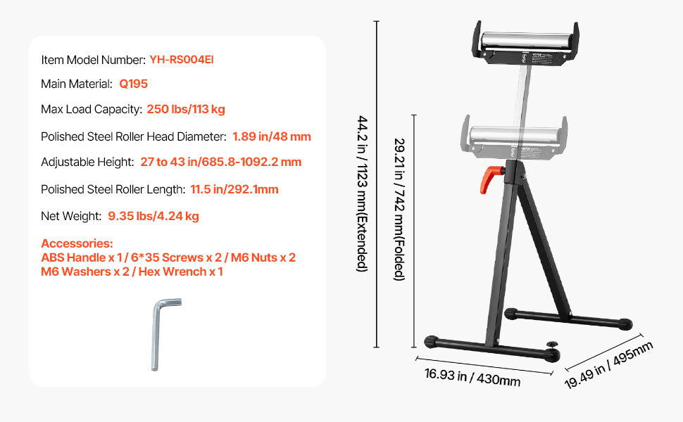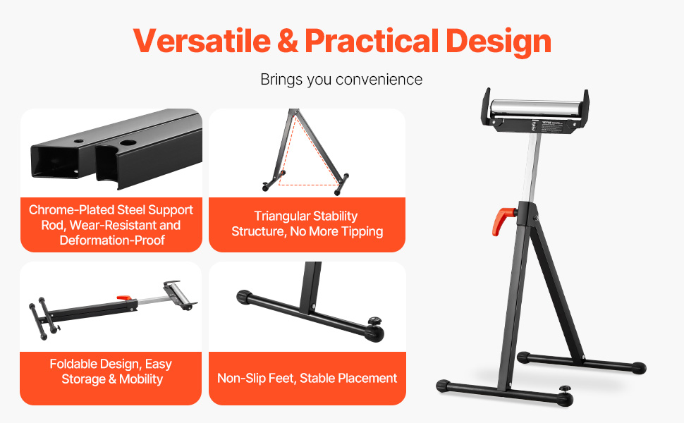Skladací valčekový stojan sa vyznačuje jednoduchým skladovaním, maximálnou nosnosťou 250 libier a nastaviteľnou výškou od 27 do 43 palcov. Hladká 11,5-palcová valčeková hlava umožňuje bezproblémový pohyb veľkých panelov ako predĺženie stolovej píly, vďaka čomu budú vaše drevárske úlohy hračkou.