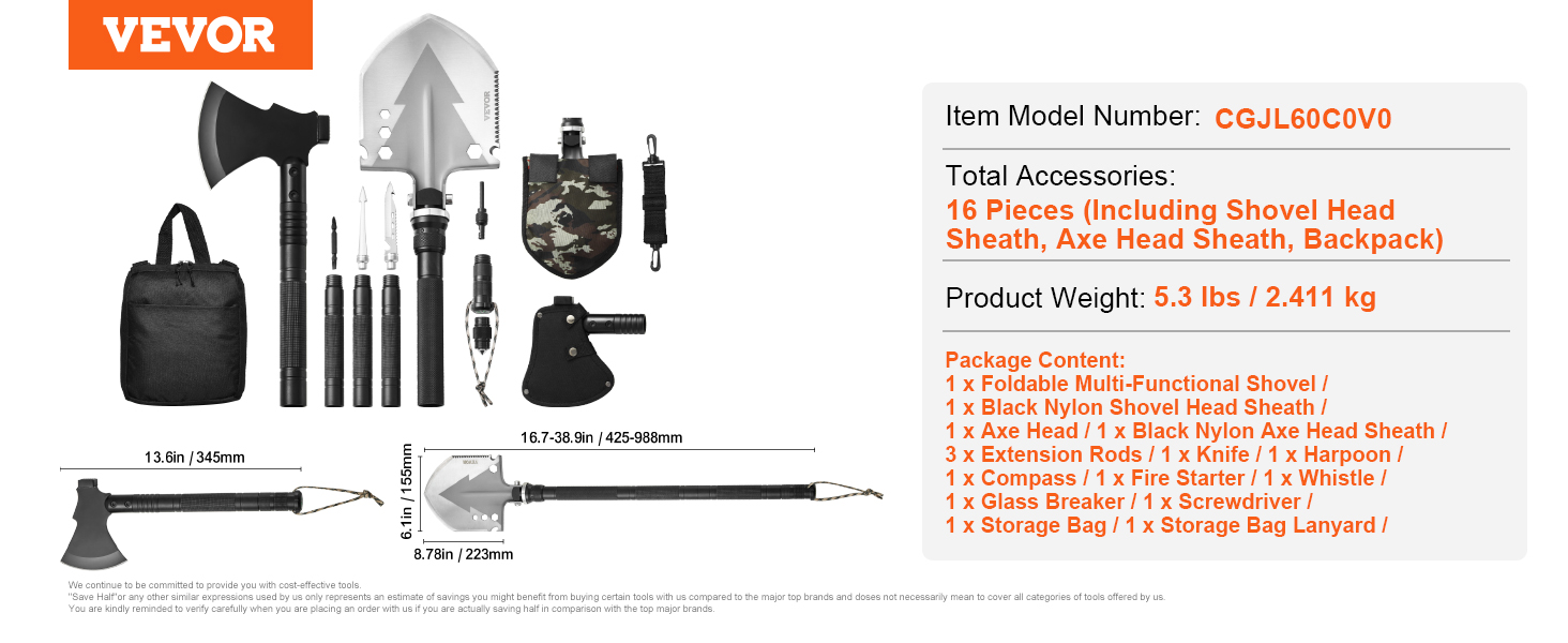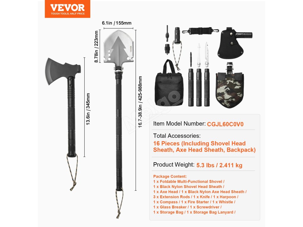 | Celkové príslušenstvo | 16 kusov (vrátane puzdra na hlavu lopaty, puzdra na hlavu sekery, batohu) |