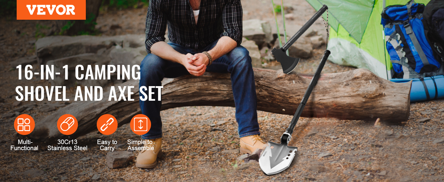 Naša kempingová súprava lopaty a sekery je špeciálne navrhnutá pre outdoorových nadšencov. Táto odolná a praktická súprava nástrojov je ideálna na prežitie v prírode, turistiku, kempovanie a dobrodružstvo.